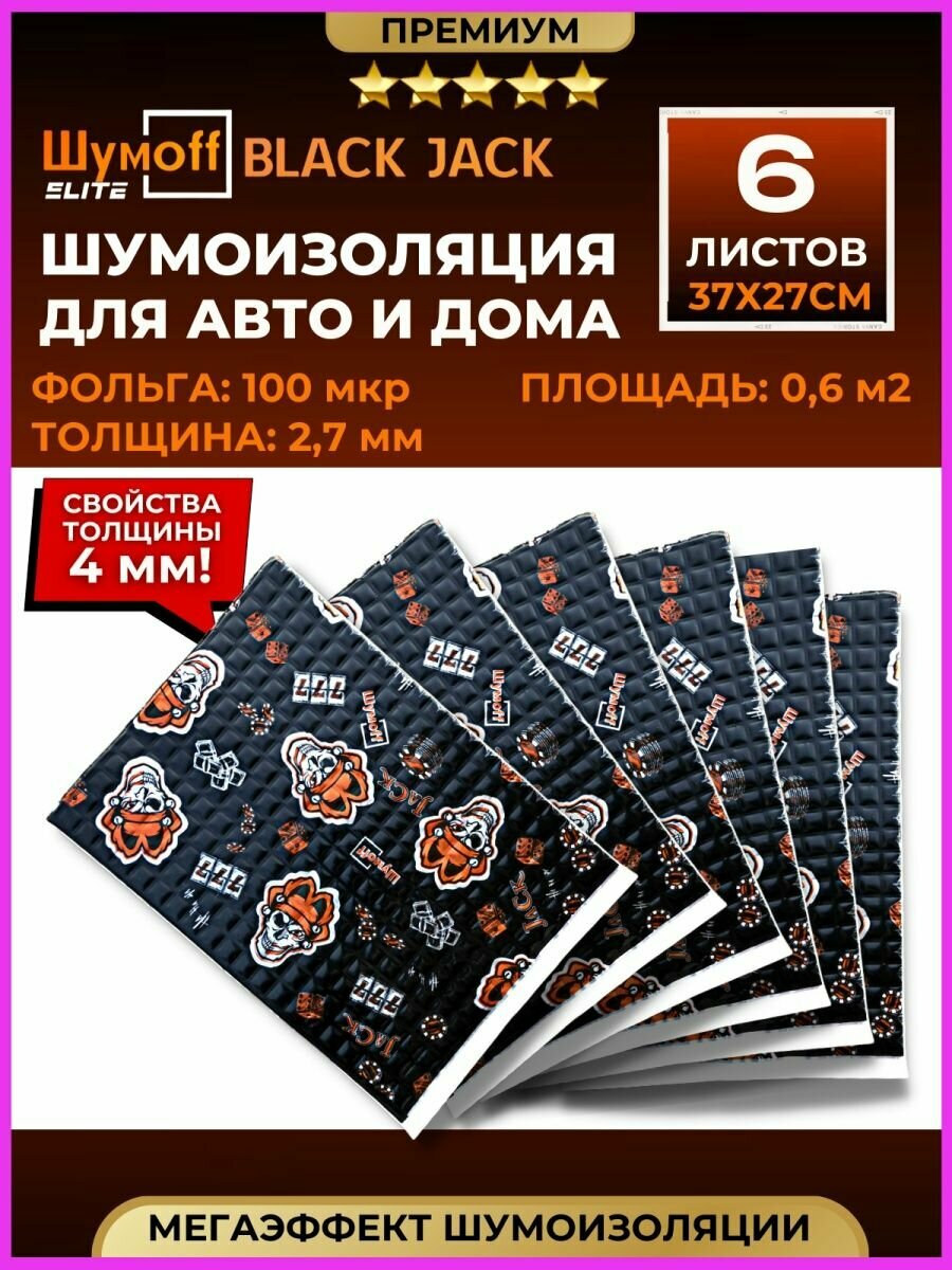 10 цен на Шумоизоляция для автомобиля Блек Джек 6 листов. Толщина 2,7 мм = 4 мм. Виброизоляция авто, вибропласт, вибродемпфер, шумка в машину. Шумоизоляция для дверей, крыши, потолка, пола, багажника, арок Шумоff Black Jack. Шумоизоляция стояка, труб, ванны