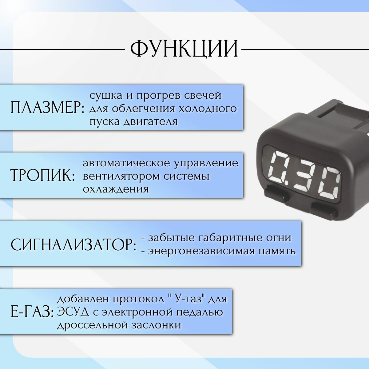 | Комплектация | бортовой компьютер; руководство; упаковка. |
