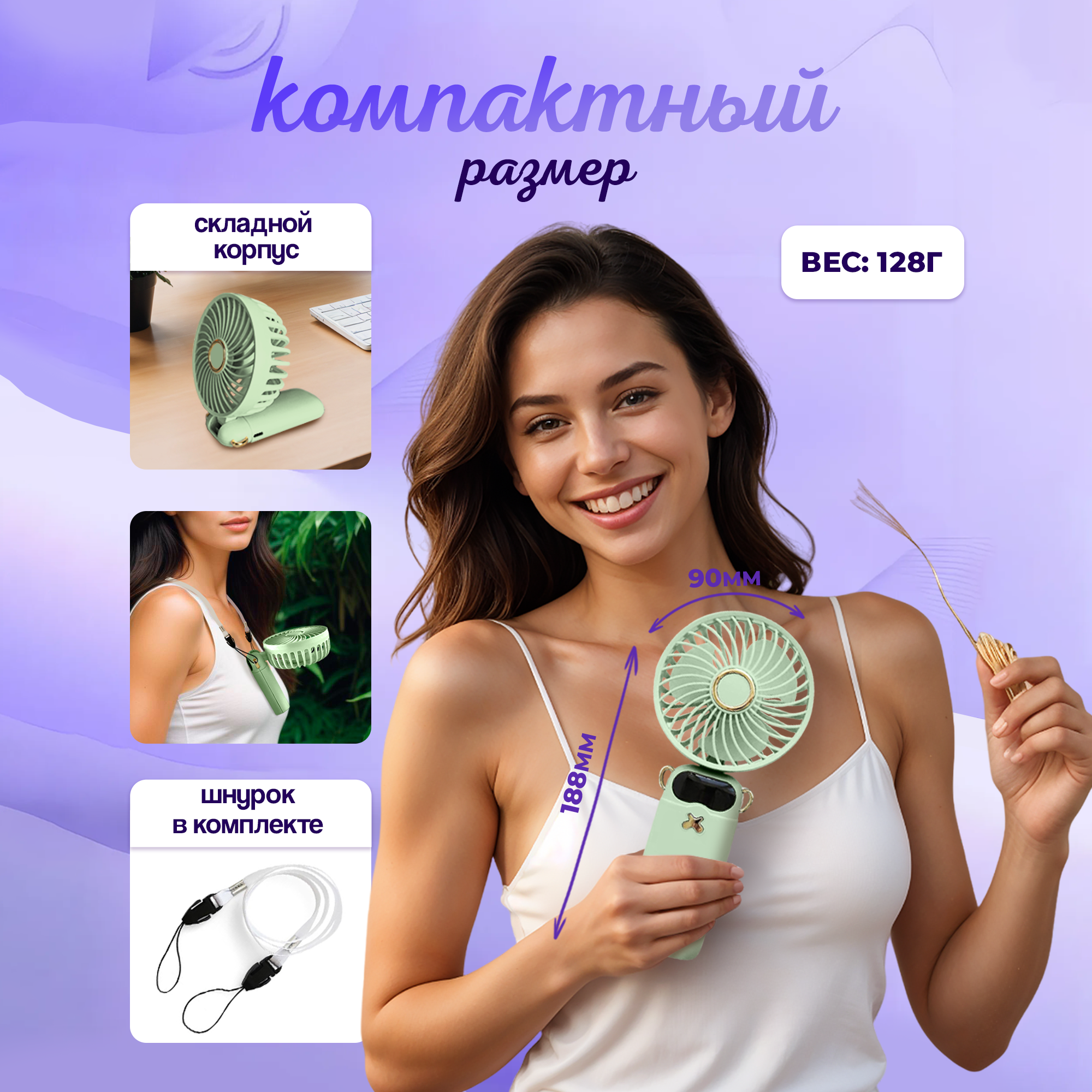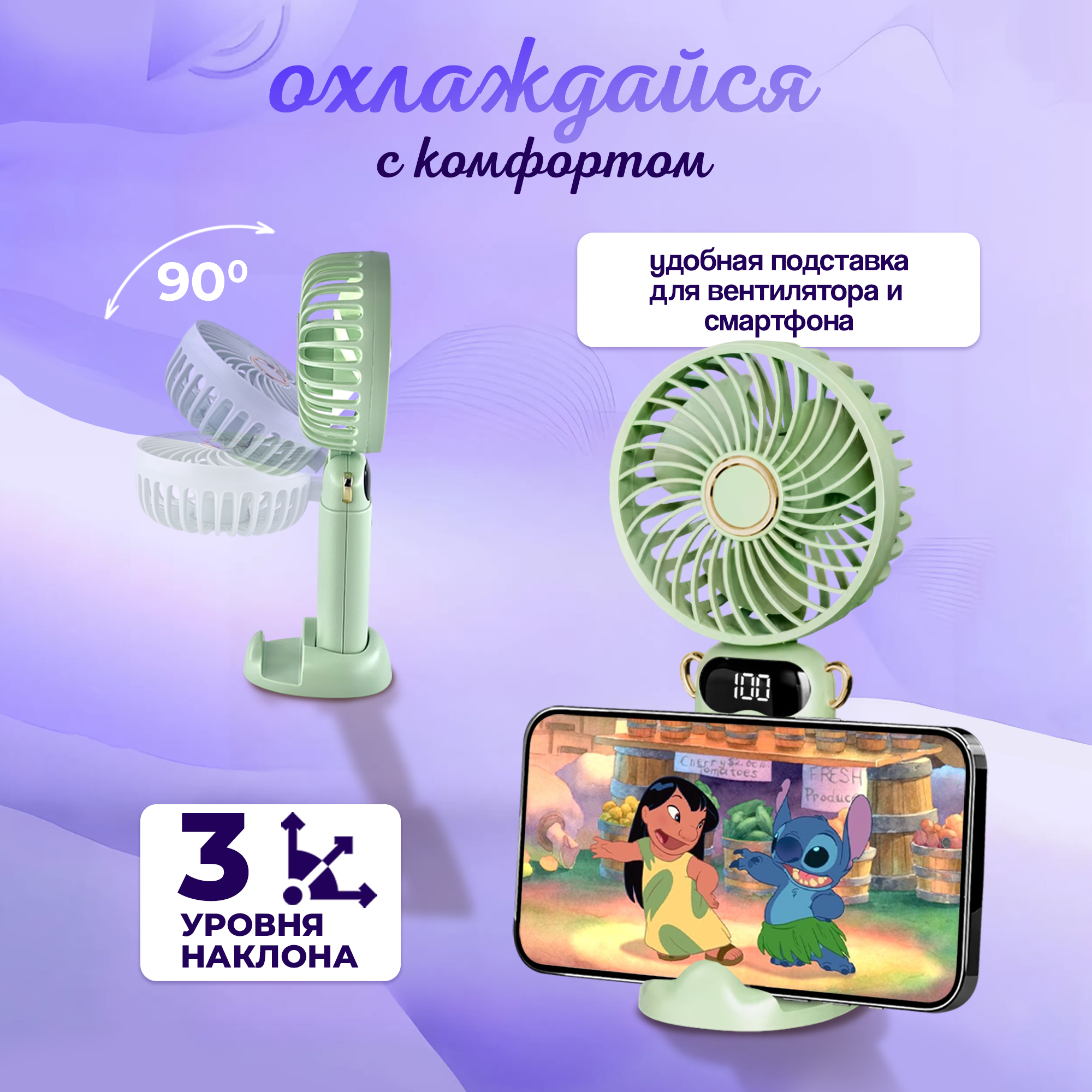 Вентилятор, зеленый, 6 режимов, регулировка наклона, дисплей, ремешок для переноски, подставка, вентилятор настольный 478 ₽
