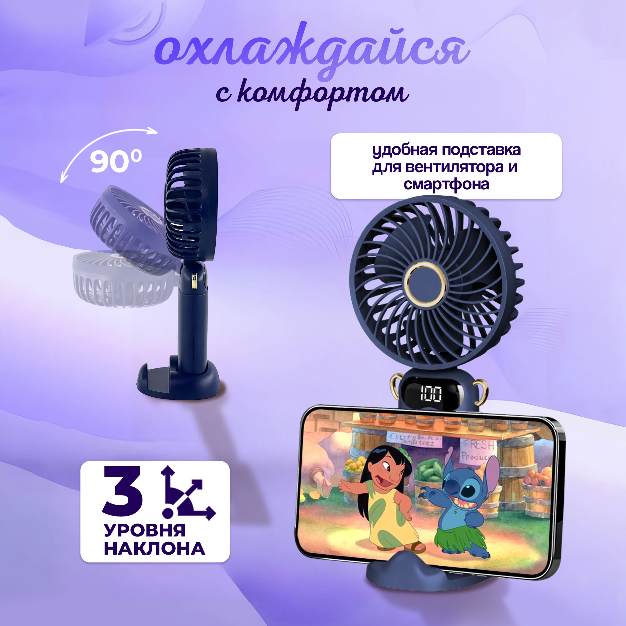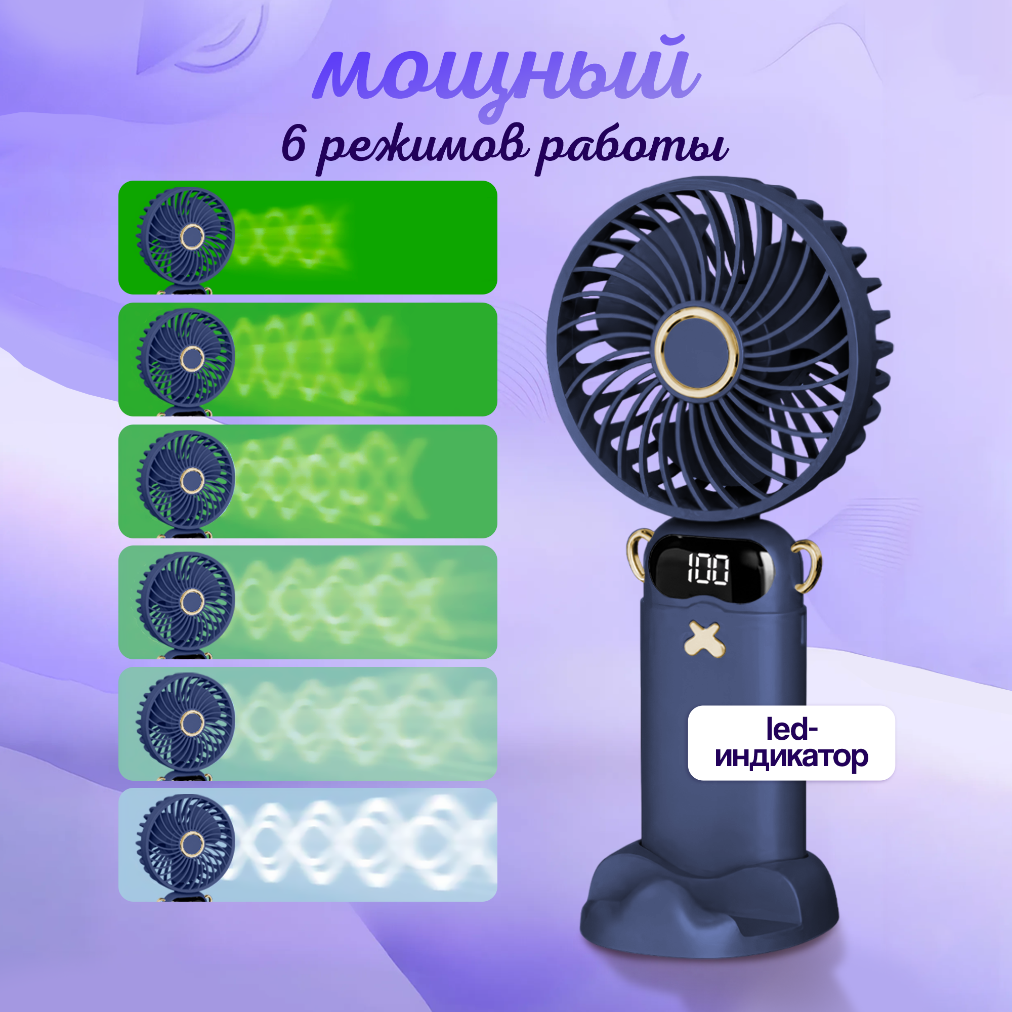Вентилятор, синий, 6 режимов, регулировка наклона, дисплей, ремешок для переноски, подставка, вентилятор настольный 478 ₽