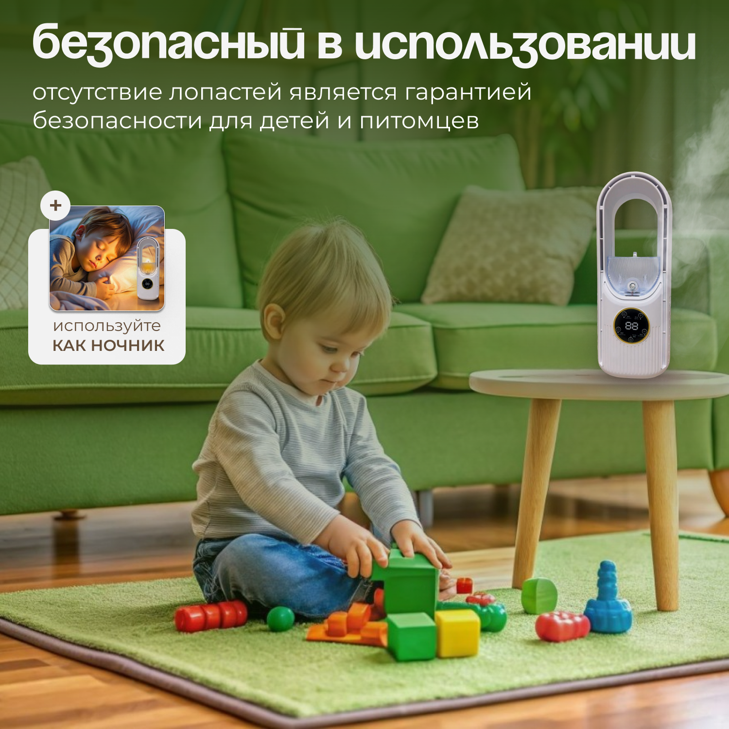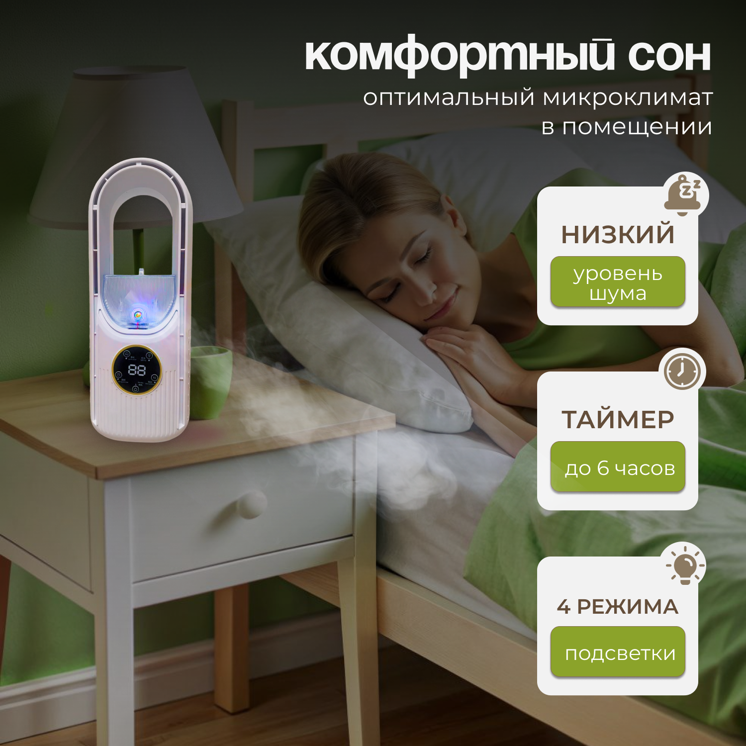 Отзывы на Настольный вентилятор без лопастей, охлаждения воздуха для дома и офиса, Увлажнитель воздуха с подсветкой, 6 скоростей, Белый