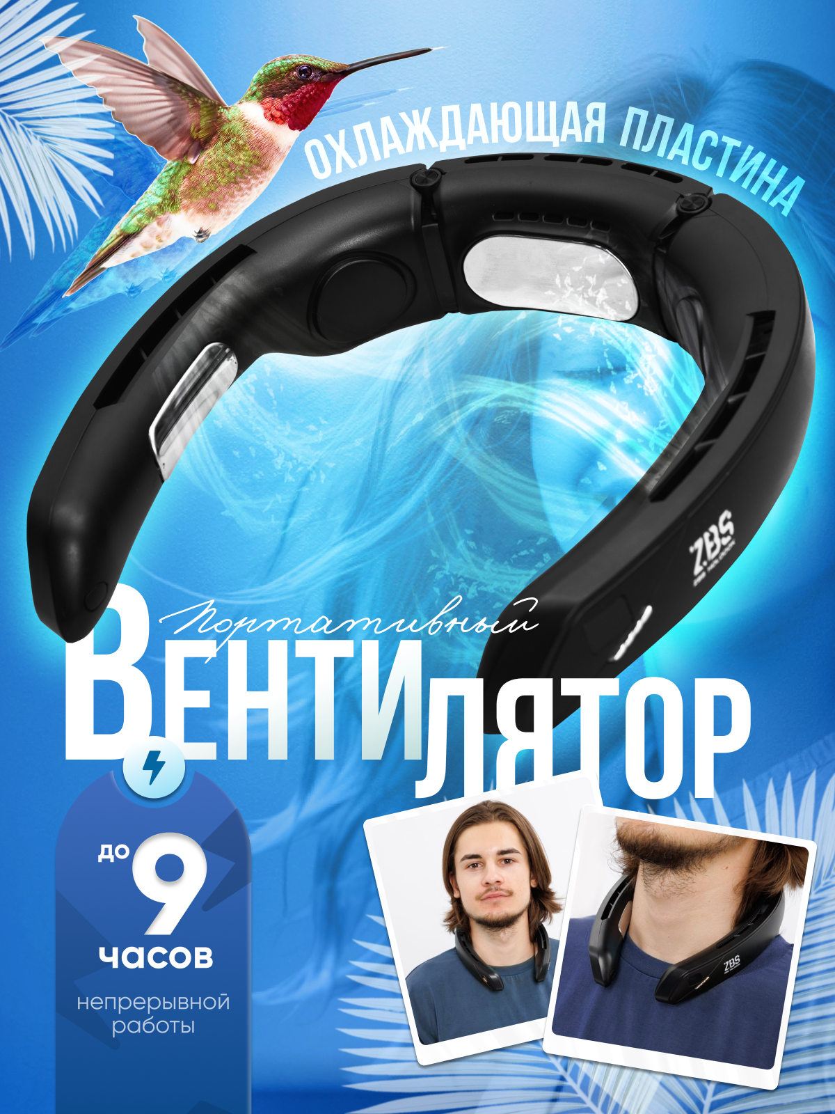 Вентилятор на шею беспроводной портативный черный информация: