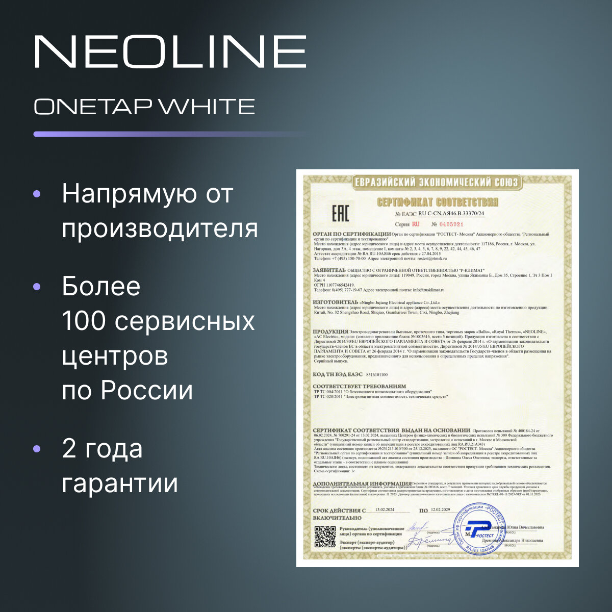 Водонагреватель проточный NEOLINE OneTap White информация: