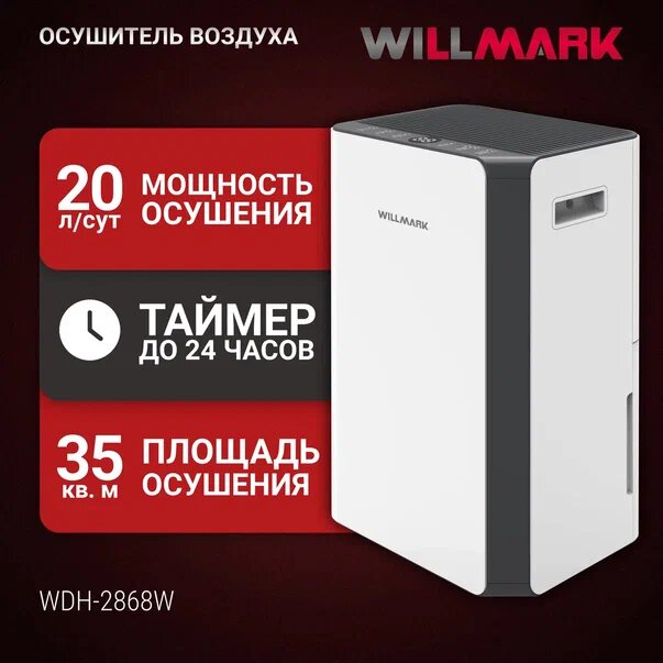 Отзывы на Осушитель воздуха WILLMARK WDH-2868W (20л/сут, 30м², 3 режима, таймер, белый)