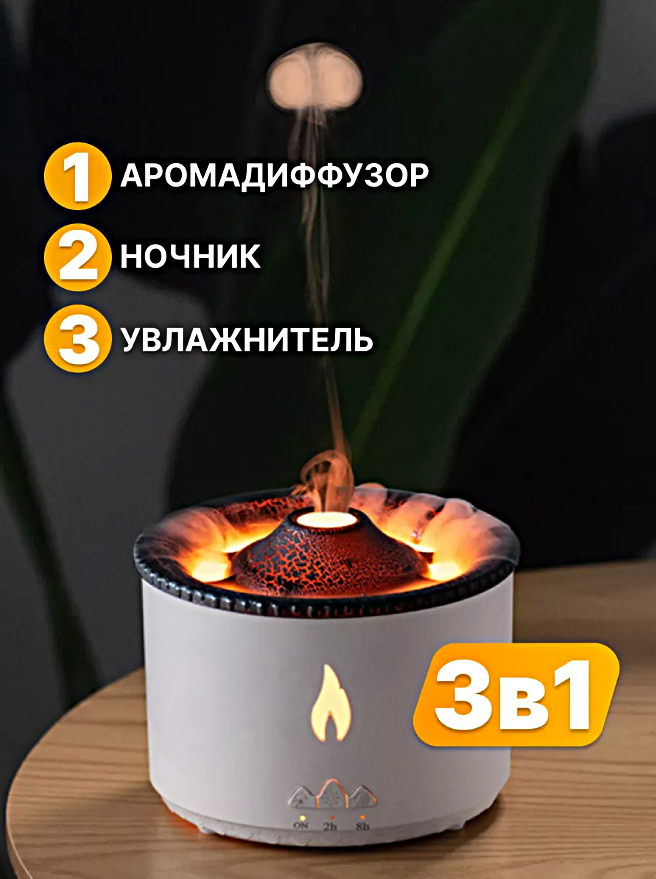 Отзывы на Увлажнитель воздуха Вулкан, Аромадиффузор с имитацией пламени, Увлажнитель воздуха ночник настольный с подсветкой, Белый