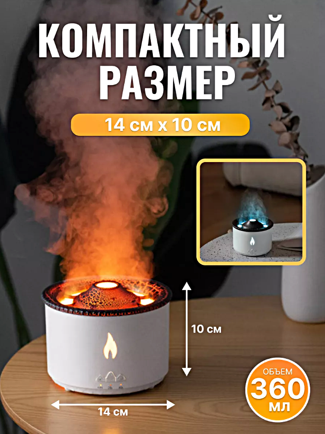 10 цен на Увлажнитель воздуха Вулкан, Аромадиффузор с имитацией пламени, Увлажнитель воздуха ночник настольный с подсветкой, Белый