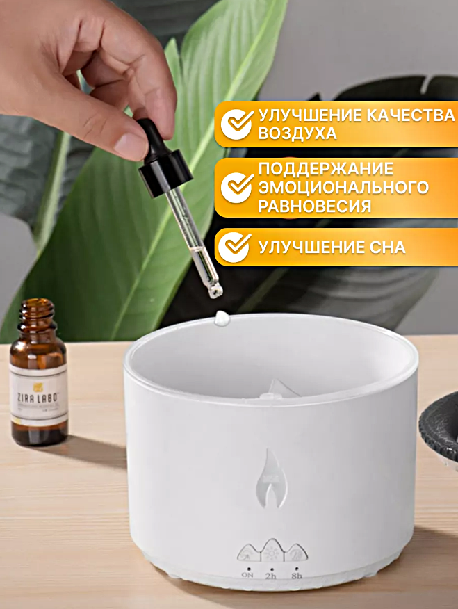 Увлажнитель воздуха и аромадиффузор с подсветкой для дома, ночник с эффектом пламяни