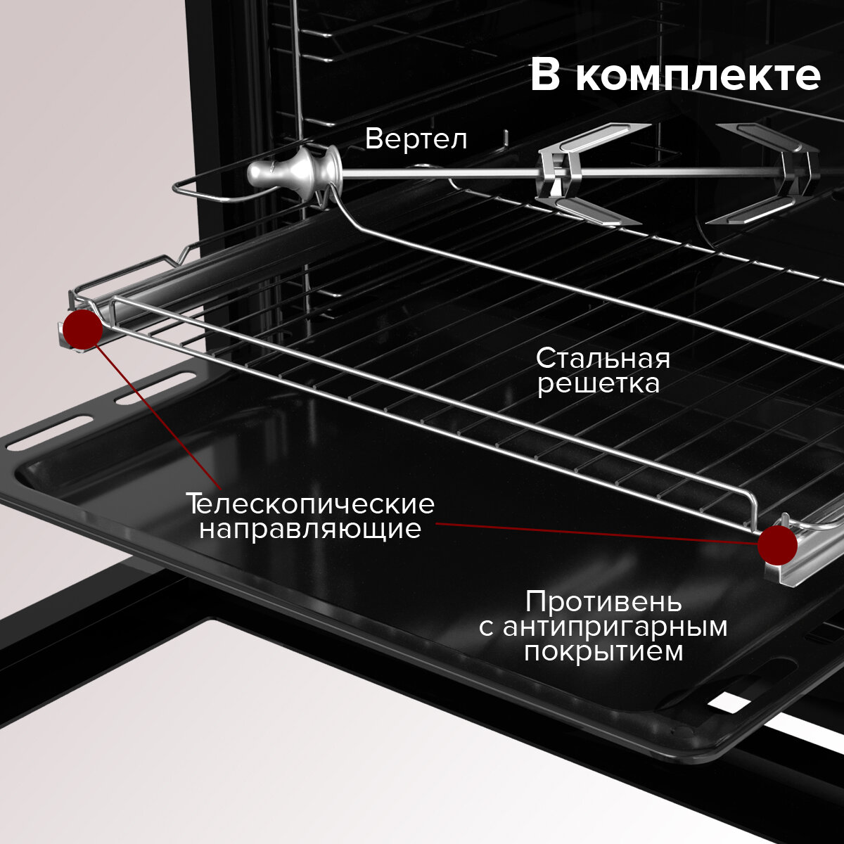 | Особенности конструкции | вертел / дисплей / подсветка камеры / телескопические направляющие / часы / эмаль легкой чистки |