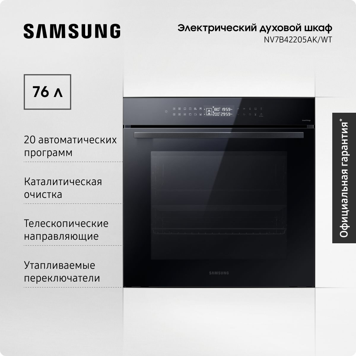 Духовой шкаф электрический встраиваемый Samsung NV7B42205AK/WT, объем 76 л, технологии Dual Cook и Air Sous Vide, приложение SmartThings Cooking, черный информация: