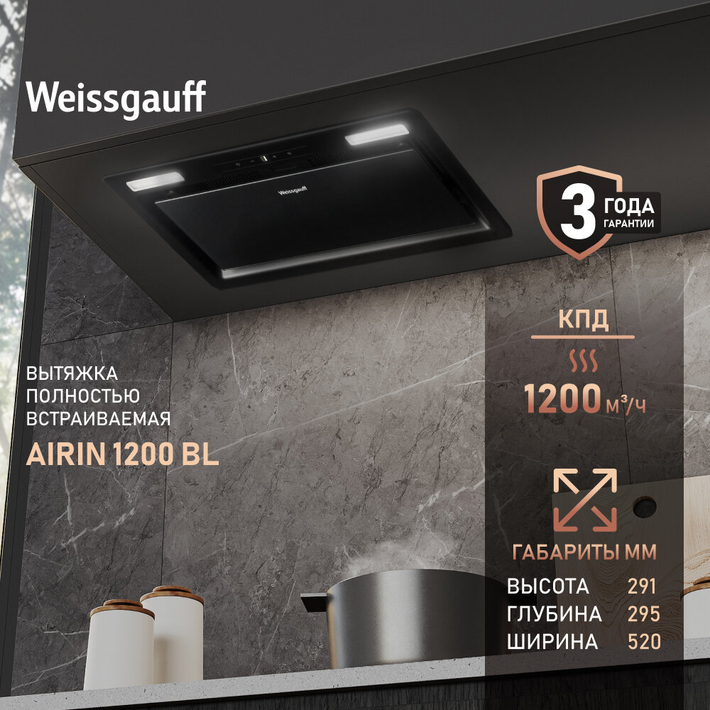 10 цен на Кухонная встраиваемая вытяжка Weissgauff Airin 1200 BL 3 года гарантии, Алюминиевый жировой фильтр, Низкий уровень шума