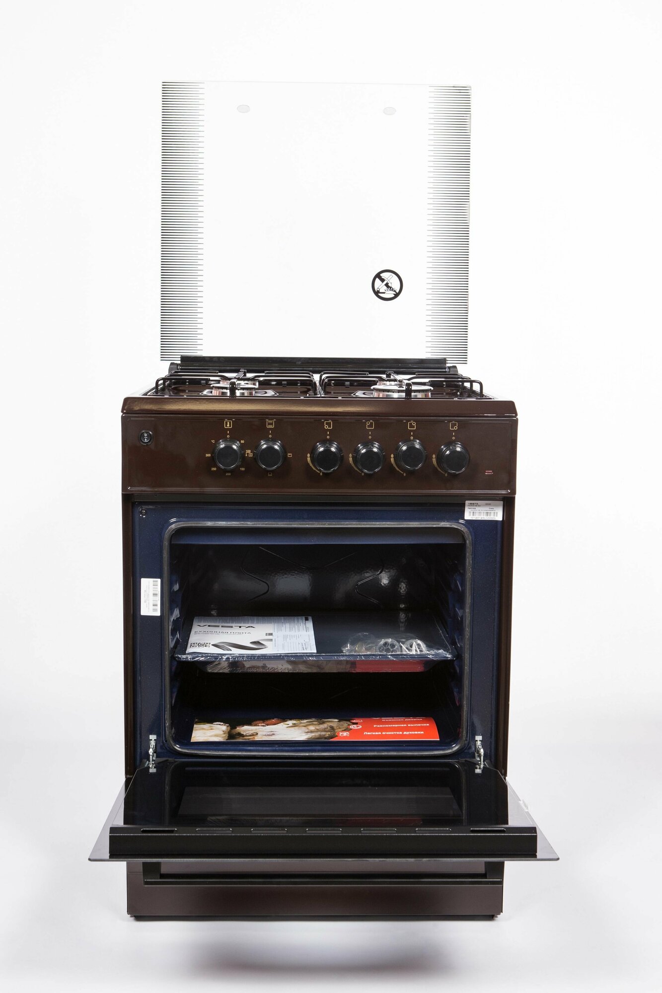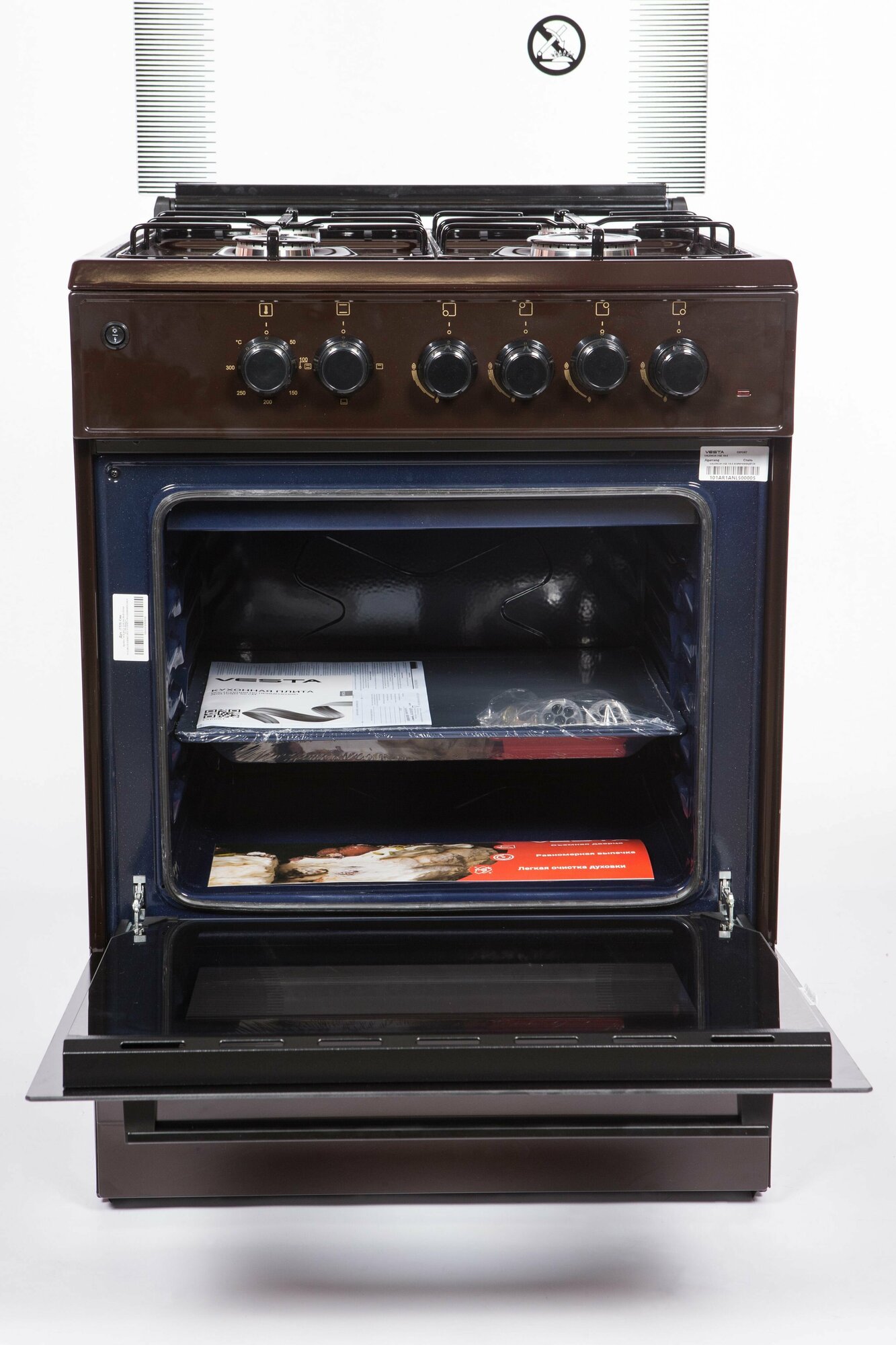 Комбинированная плита VESTA-VALENCIA VGE 10-E коричневая с электрической духовкой, электро-поджиг, информация: