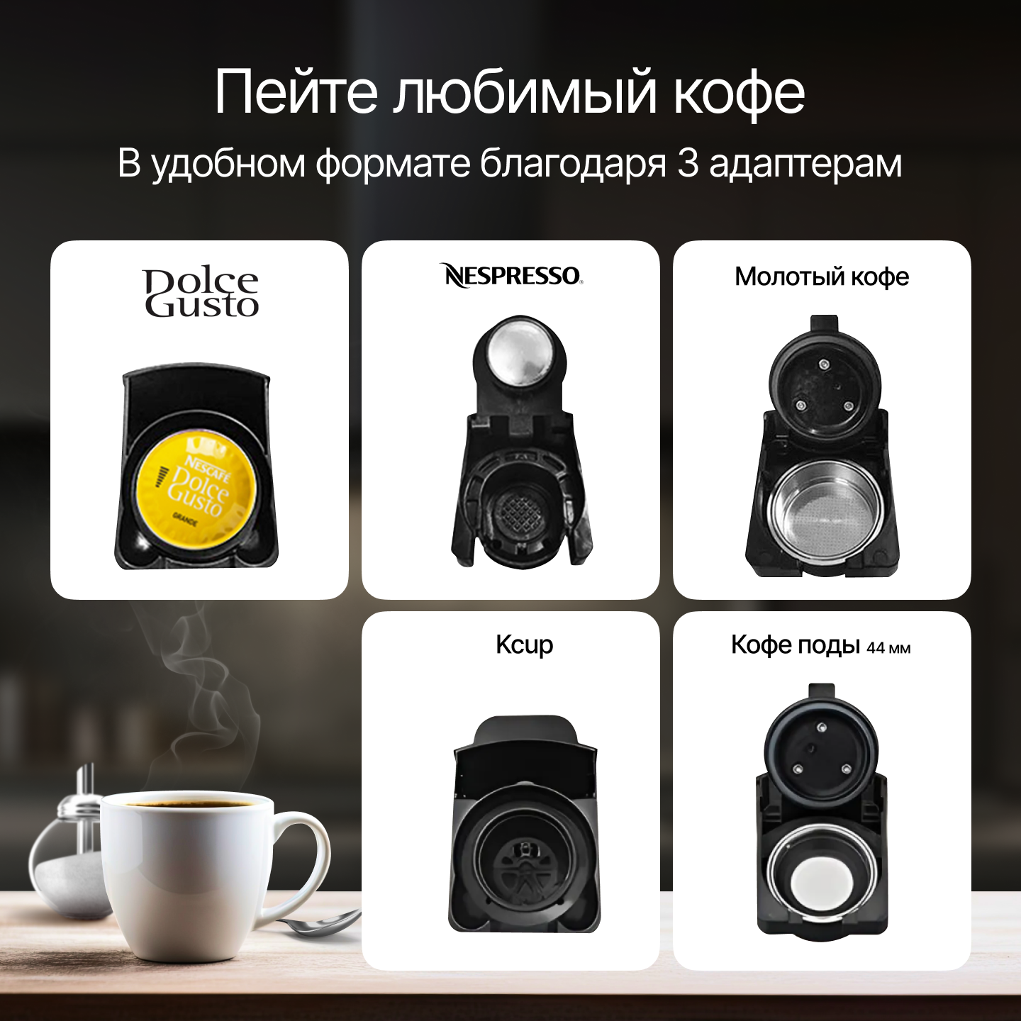 Кофемашина HiBREW H2B черный(ЕАС-сертификат) для нескольких видов капсул и капсул для кофе Dolce Gusto, с режимами горячего и холодного кофе 10 190 ₽