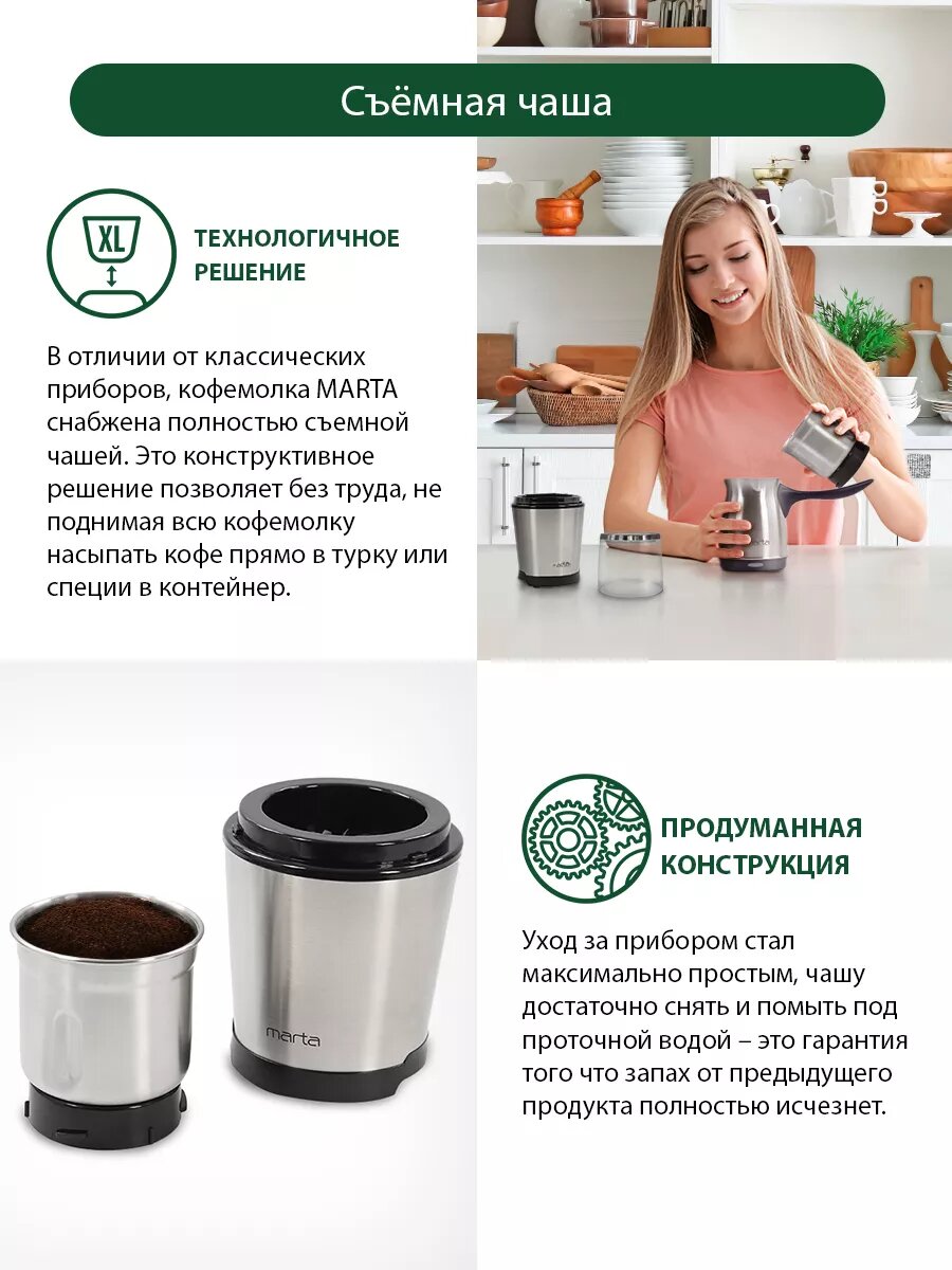 Кофемолка MARTA MT-CG2179A белый жемчуг информация: