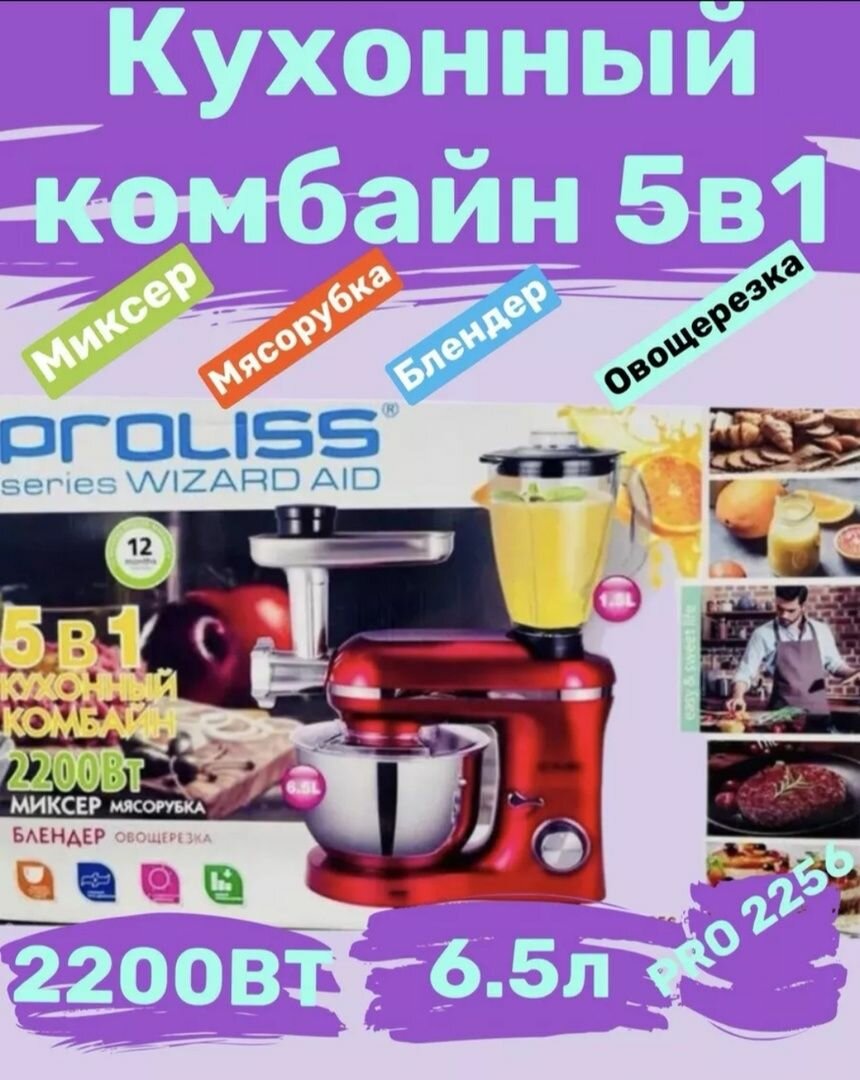 Отзывы на Кухонный комбайн мясорубкой, блендер ,овощерезка ,миксер многофункциональный мощный 5в1, 2200Вт