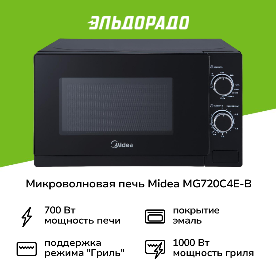 Микроволновая печь с грилем Midea MG720C4E-B информация: