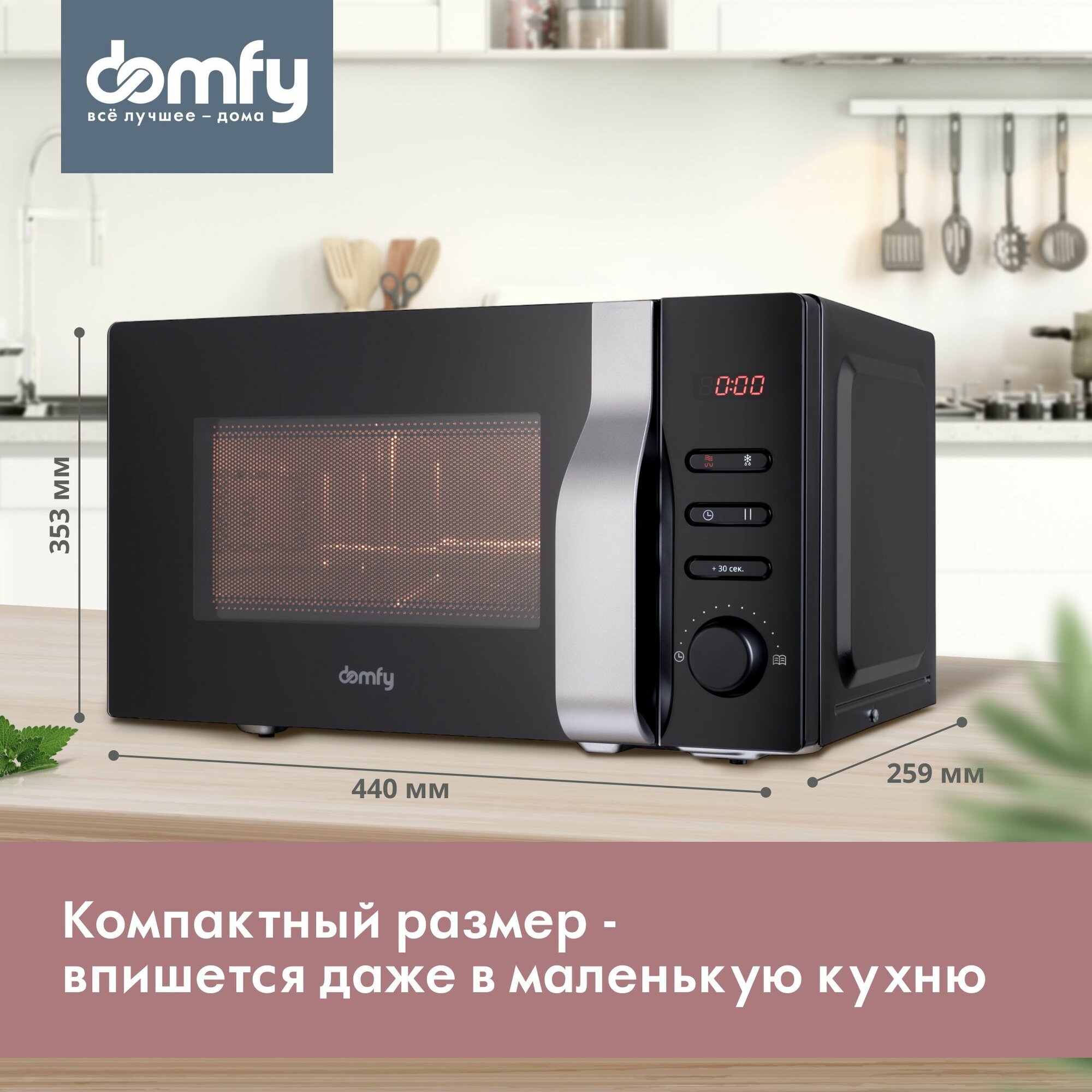 Отзывы на Микроволновая печь с грилем Domfy DSB-MW105, 20л. 700Вт, 8 автопрограмм, двухэтапный и комбинированный режимы приготовления, быстрый старт, блокировка включения, черный