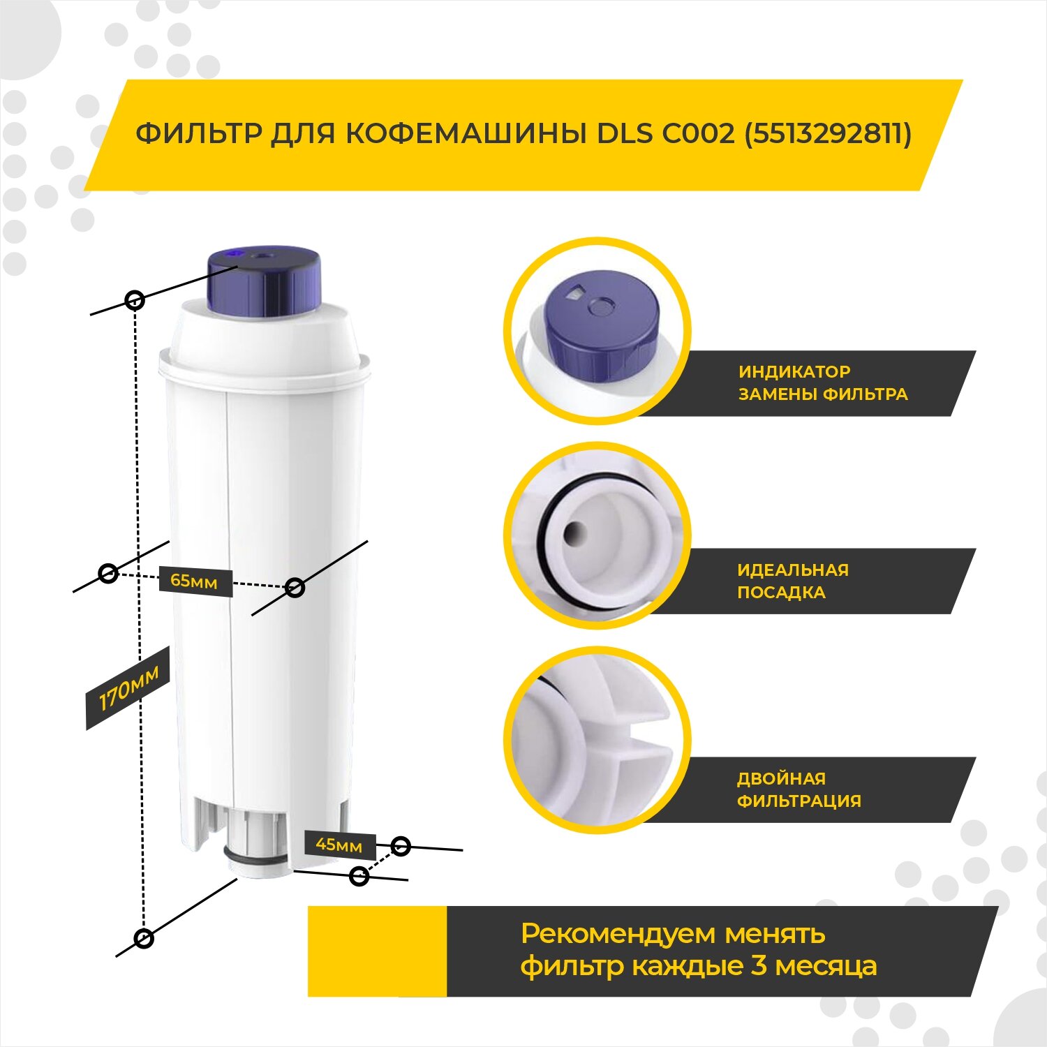Фильтр для кофемашины DeLonghi (Делонги), совместимый с DLS C002 (5513292811), 3 ШТ. информация: