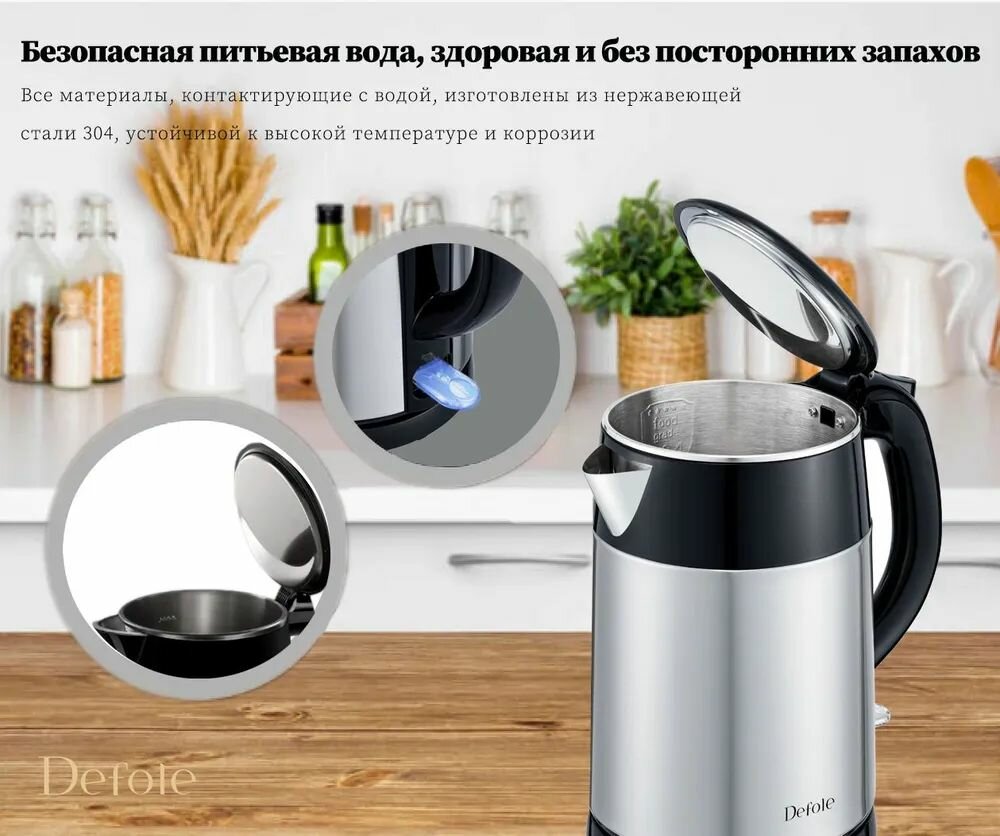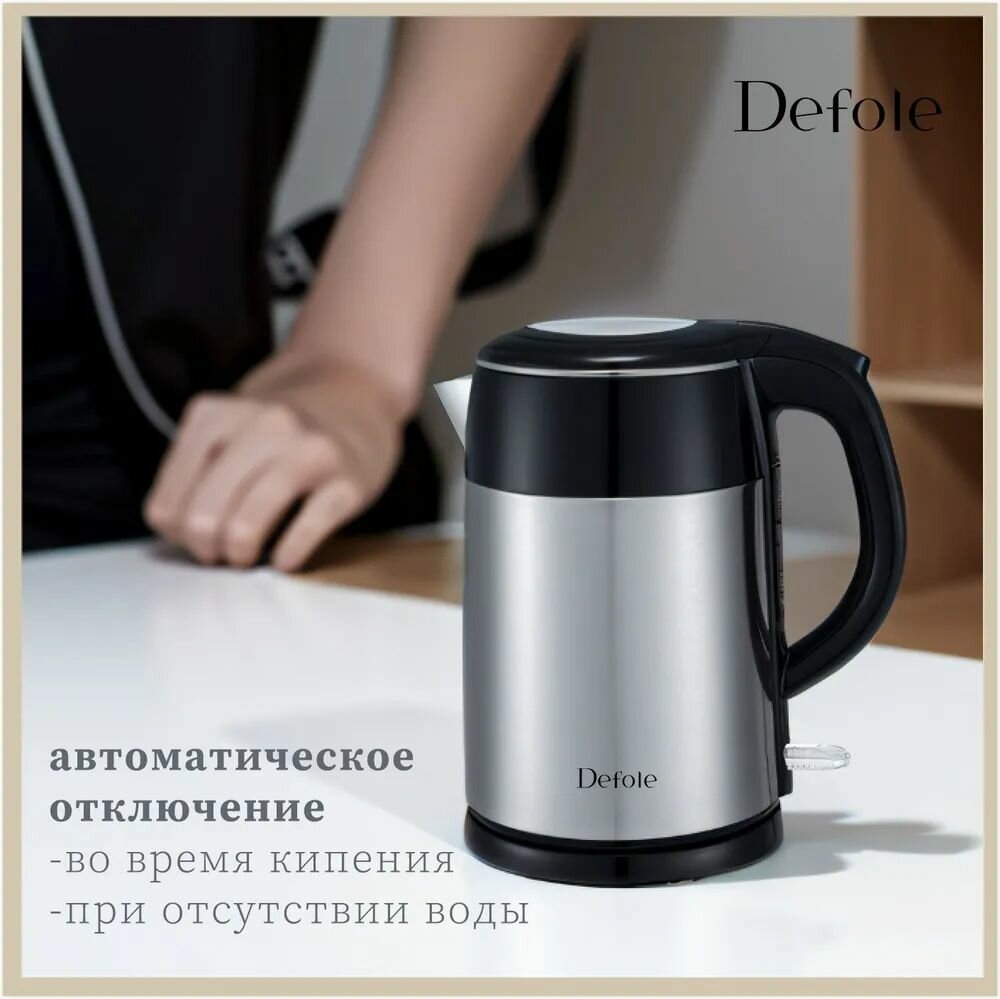 10 цен на Defole Электрический чайник DF-3252A, черный, серебристый