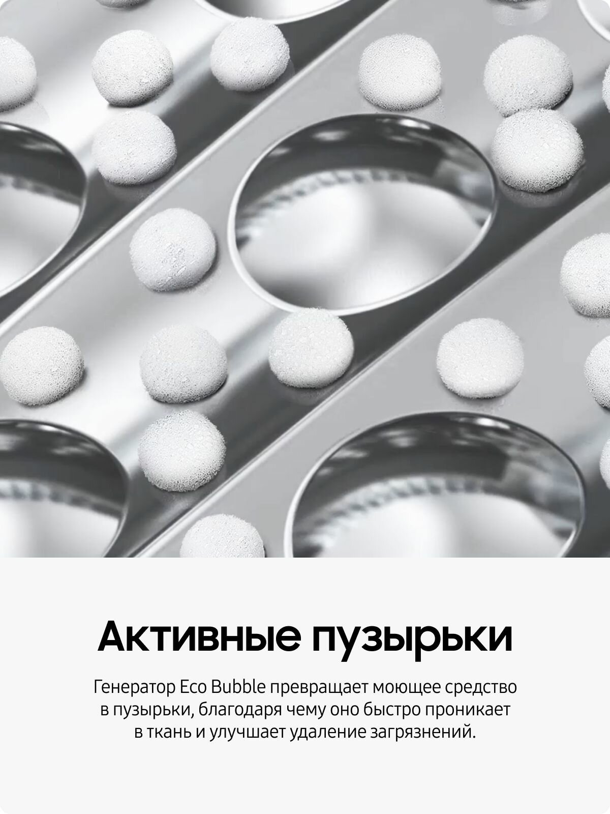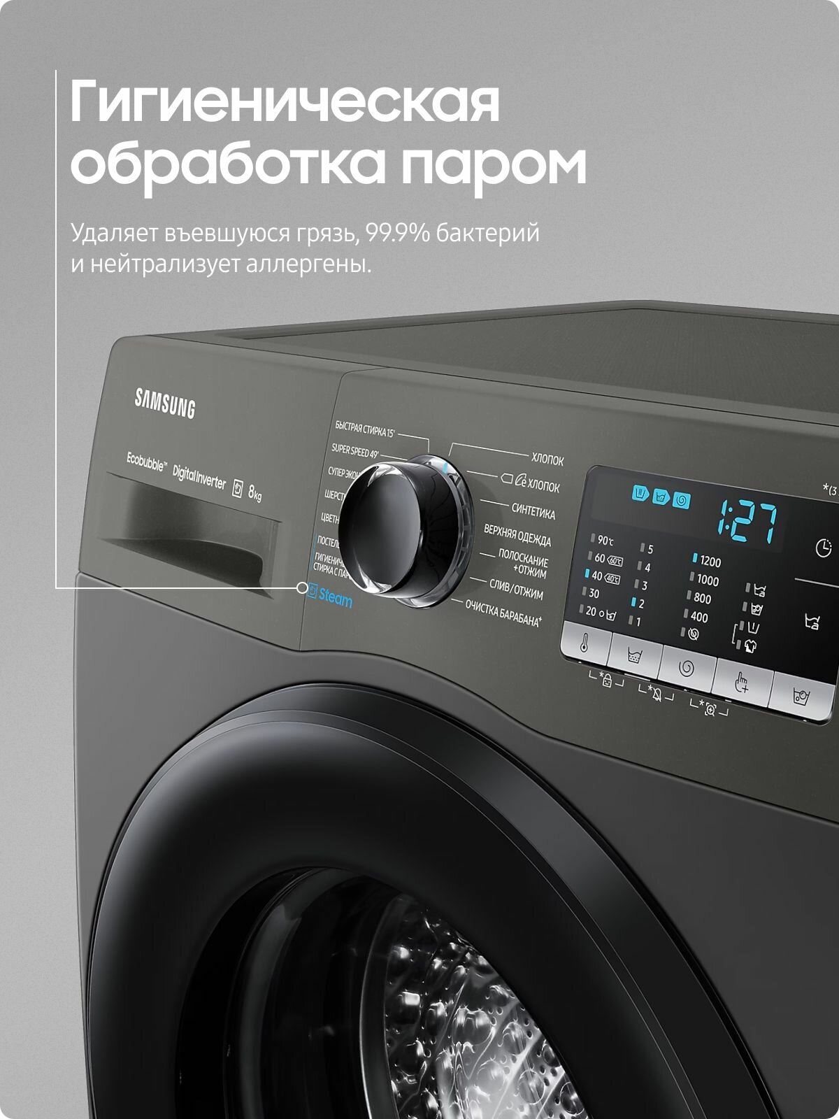 Узкая стиральная машина Samsung WW80AGAS21AXLP, 8 кг, с электронным управлением, инверторным мотором, технологией Eco Bubble, графит / черный информация: