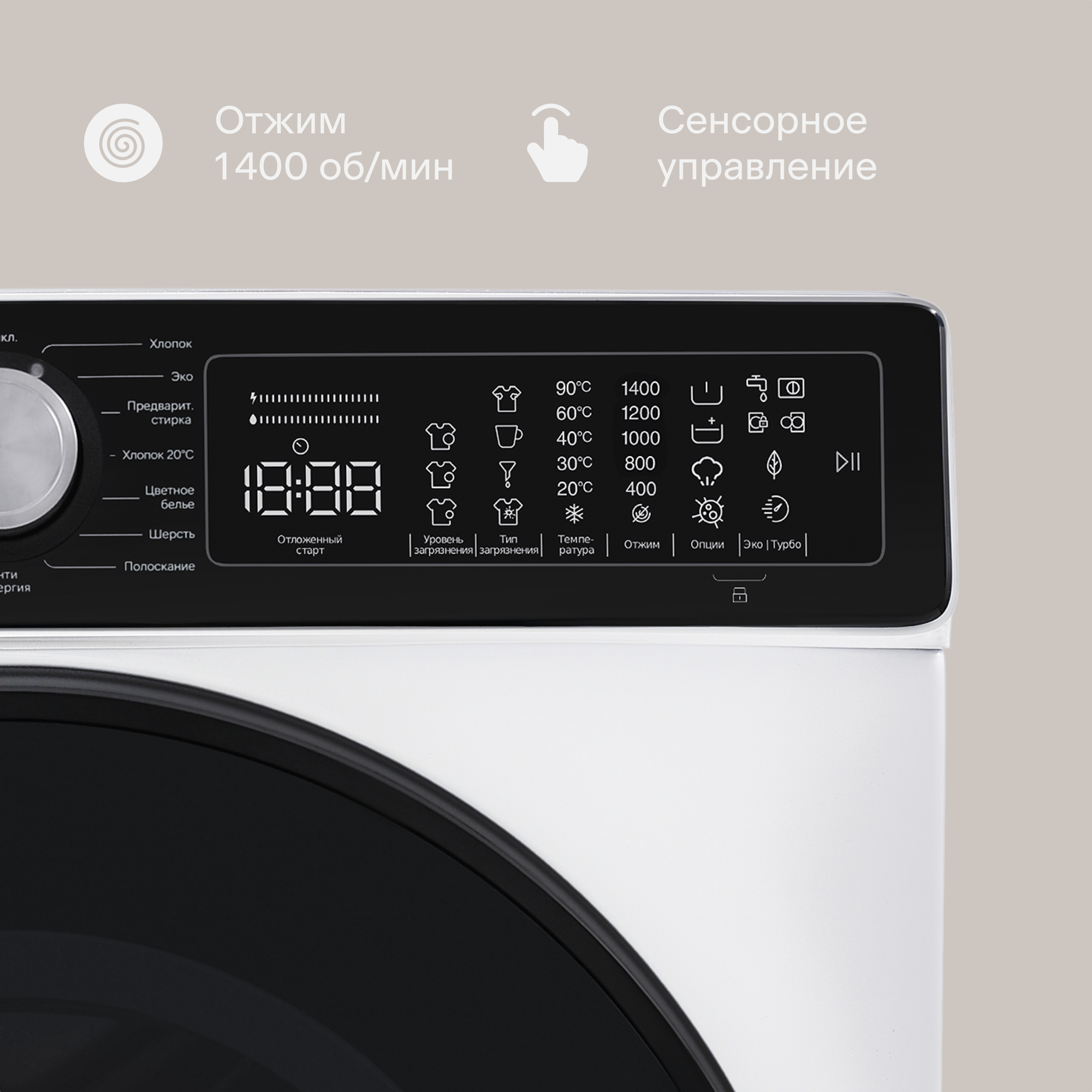 Стиральная машина с инвертором и паром Tuvio WFF18HW21, белая информация: