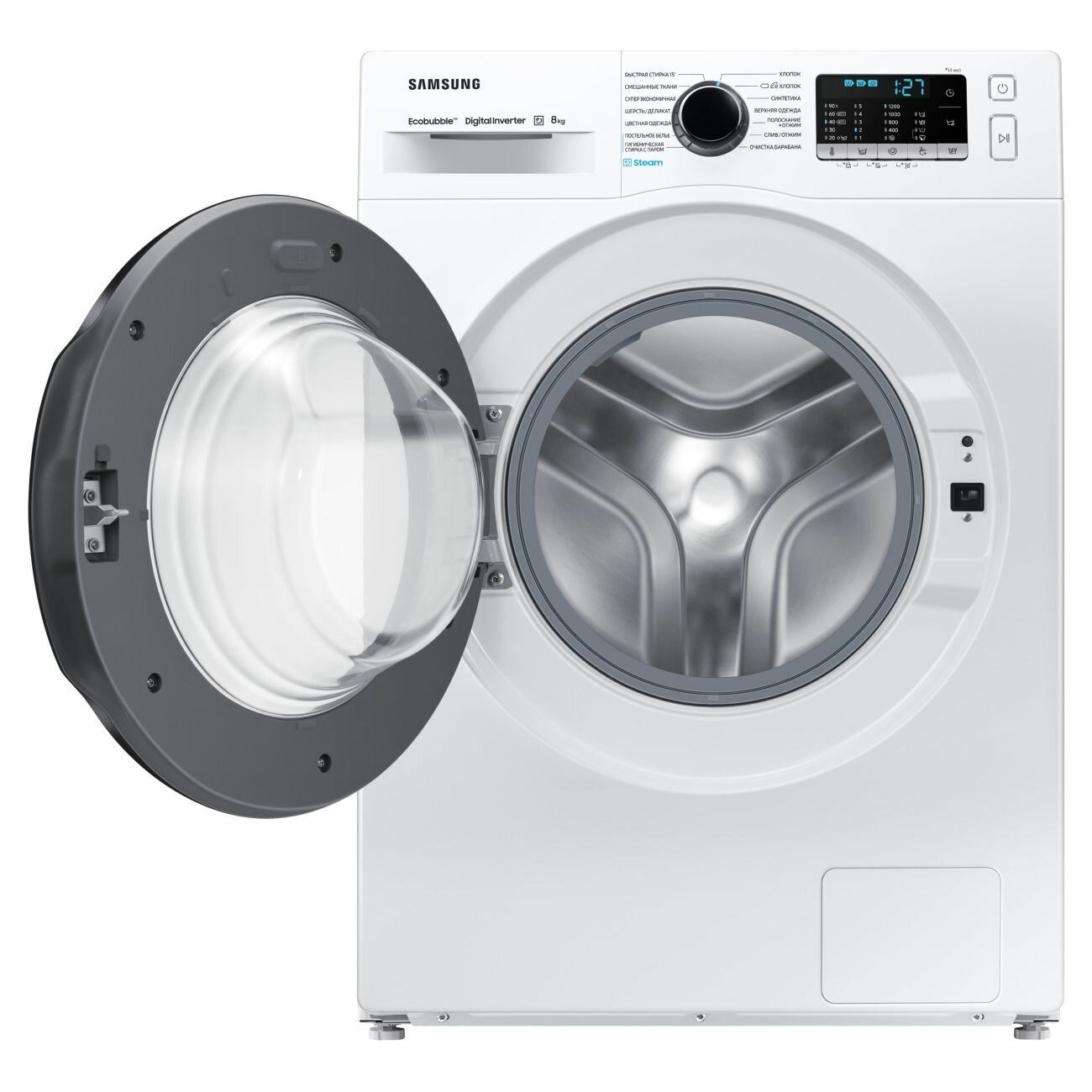 Стиральная машина фронтальная SAMSUNG WW60AG4S00CE/LD белый/серебро (6 кг, диспл, пар, инвертор, дозагрузка)