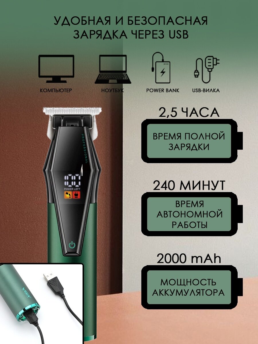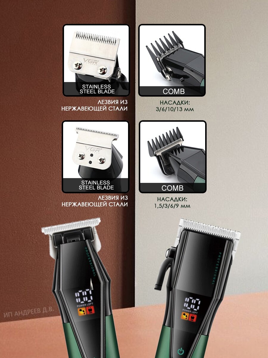 Профессиональный набор 2 в 1: машинка+триммер для волос, бороды и усов VGR V-677 информация:
