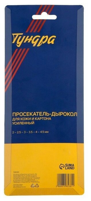Просекатель дырокол для кожи и картона тундра, усиленный, 2-2.5-3-3.5-4-4.5 мм, 235 мм 7085381 информация: