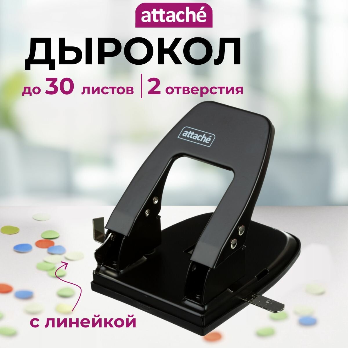 Дырокол Attache до 30 листов, с линейкой, цвет черный (618136) информация: