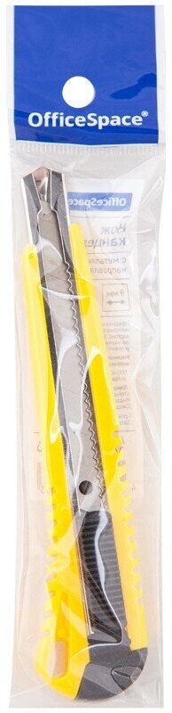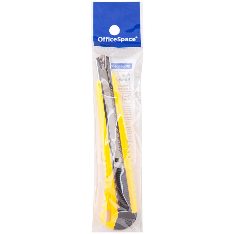 Нож канцелярский 9мм OfficeSpace, усиленный, с фиксатором, металл. направляющие, ассорти, европодвес информация: