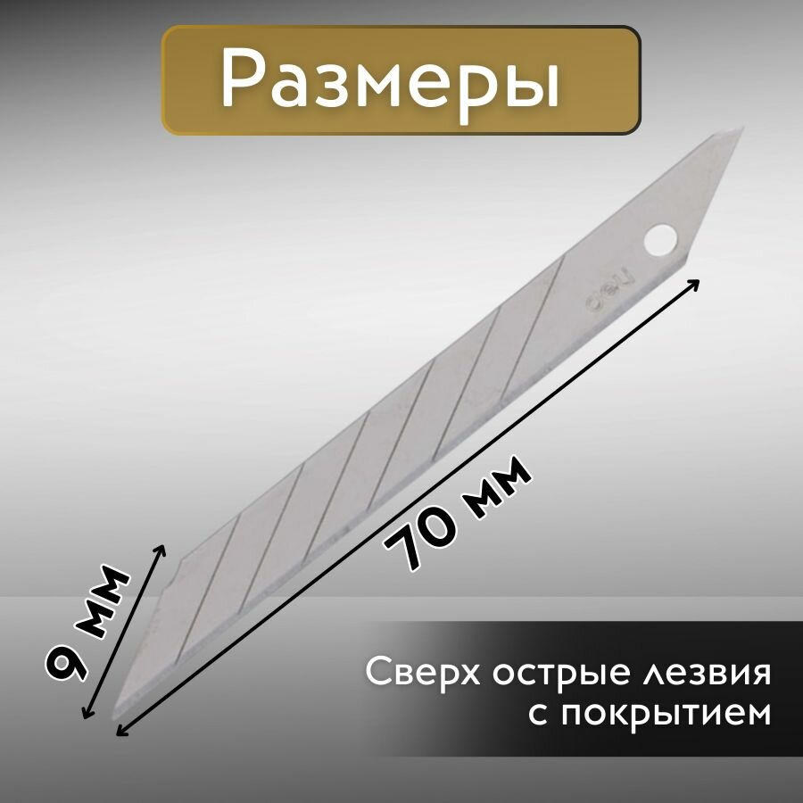 10 цен на Лезвия сменные для канцелярских ножей 9 мм. 30 градусов, сталь SK5 (Японский сплав), набор 10 шт. Серебристые.
