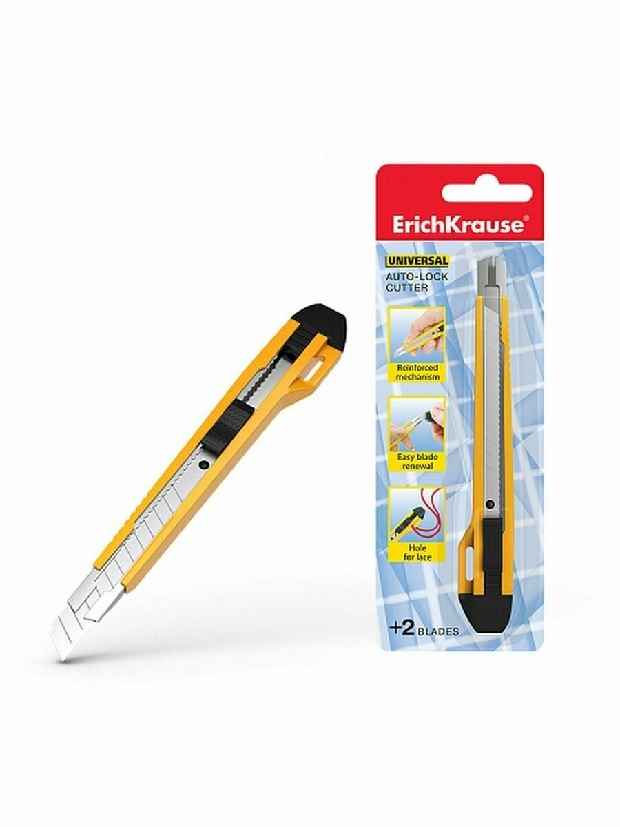Нож канцелярский 9 мм, Erich Krause, с автоматической системой фиксации лезвия auto-lock, корпус ножа полностью металлический