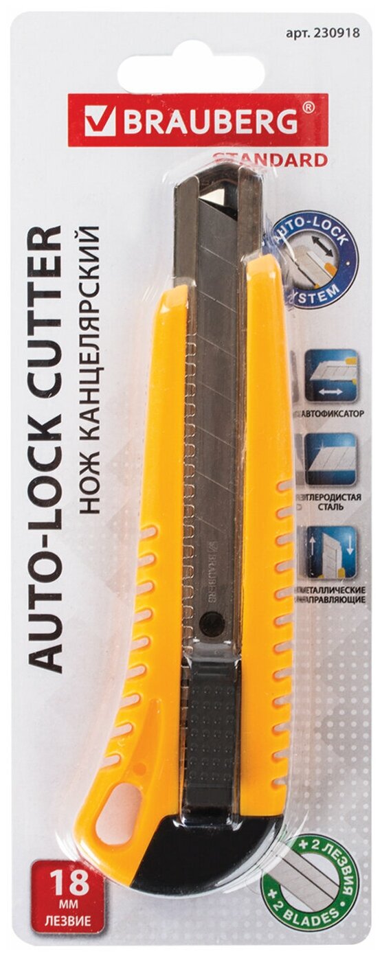 Нож канцелярский 18 мм BRAUBERG "Standard", 3 лезвия в комплекте, автофиксатор, корпус ассорти, 230918 информация:
