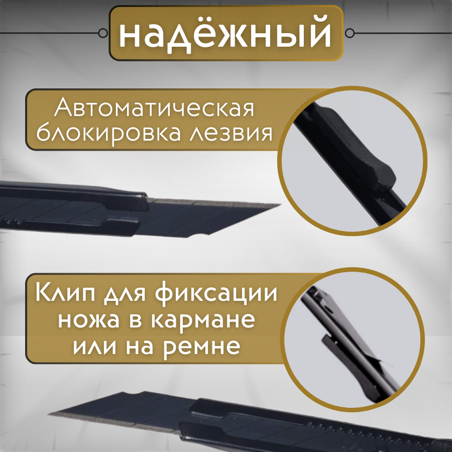 10 цен на Канцелярский нож с автоблокировкой и выдвижным лезвием, сталь-SK5 ширина 9мм, угол 30, черный