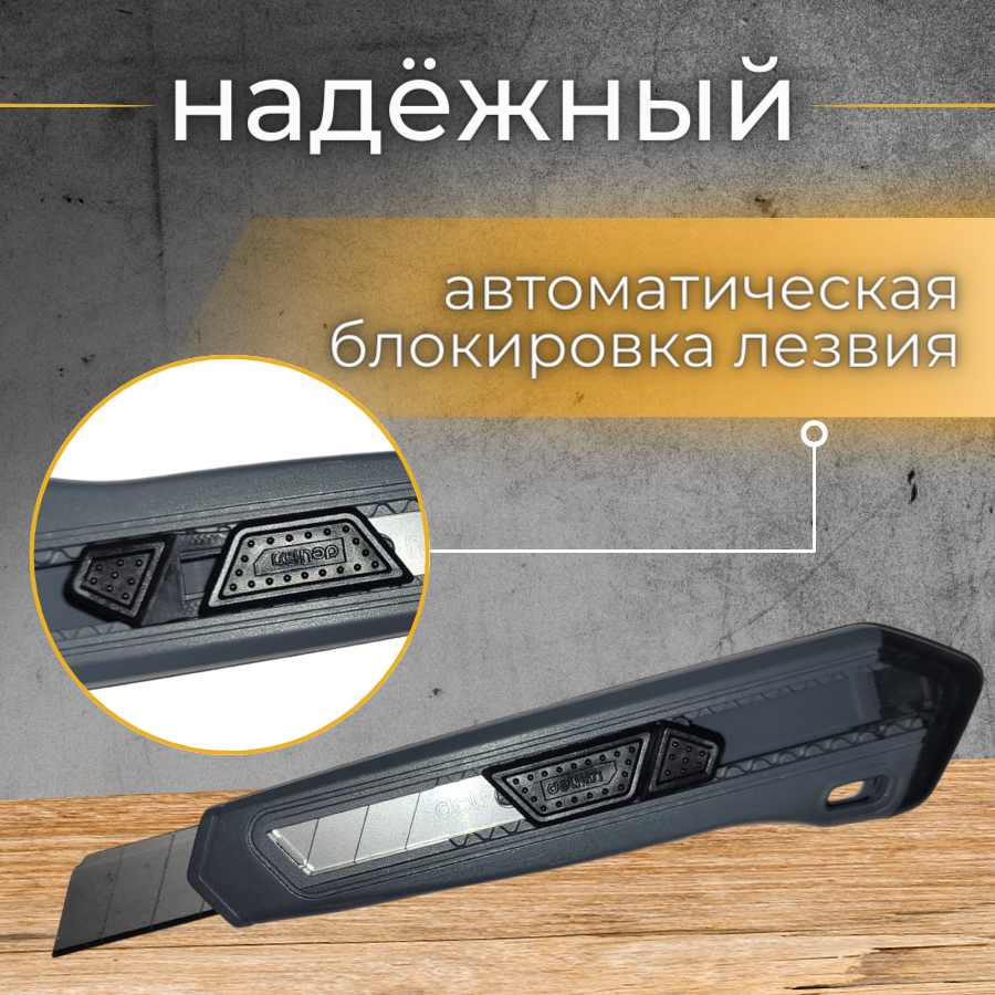 Канцелярский нож с фиксатором, сталь-SK5 ширина 18мм, угол 60, черный DL018C информация: