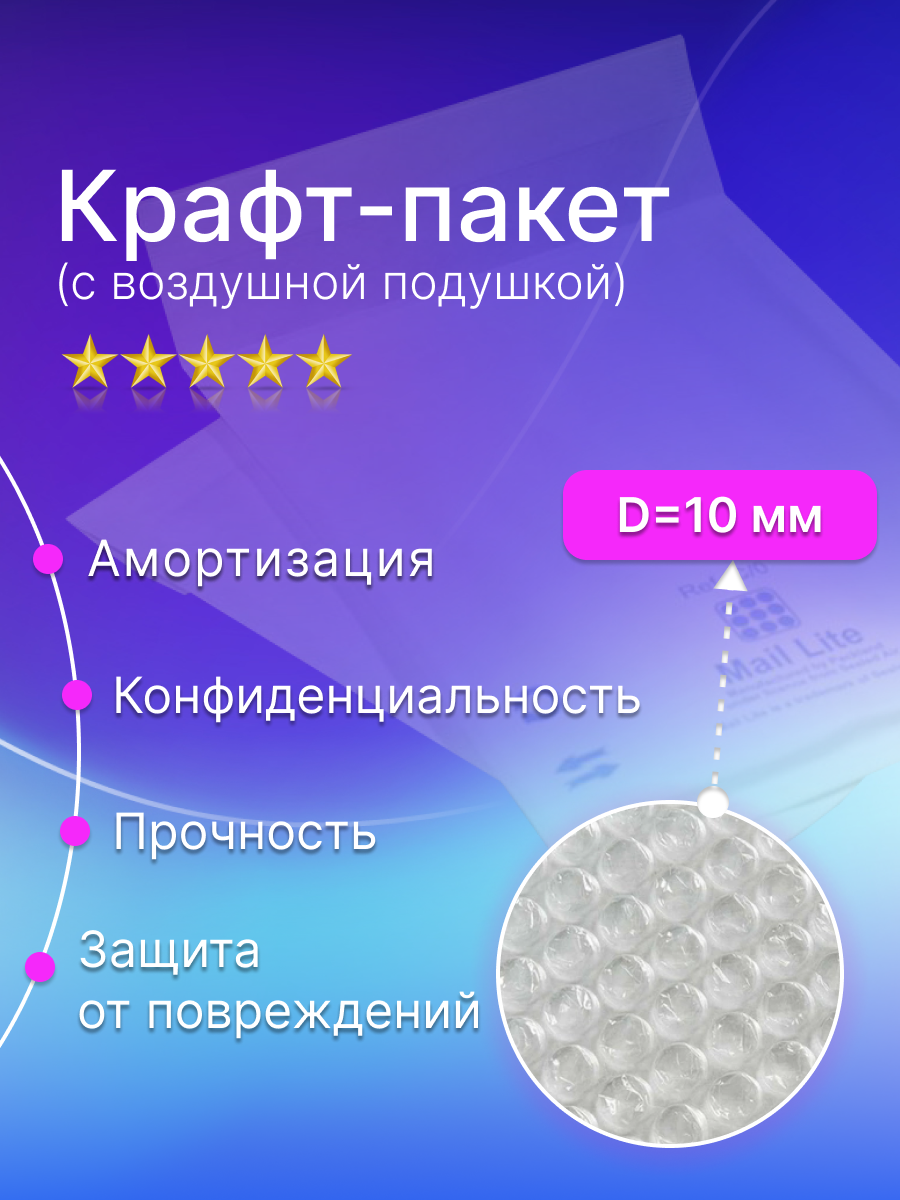 Отзывы на Крафт пакет с воздушной подушкой Mail Lite D/1 (180х260 мм), белый, 10 штук