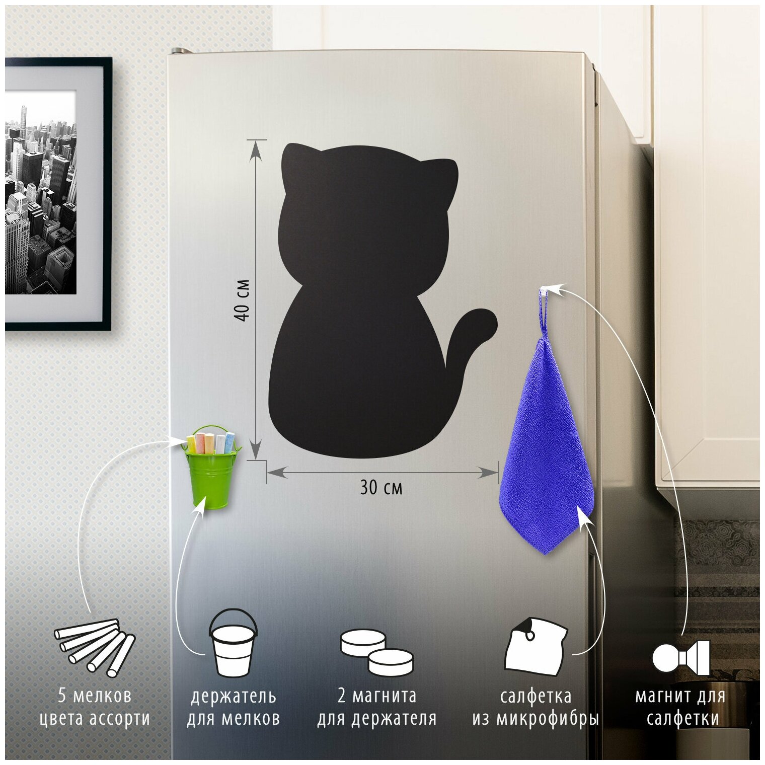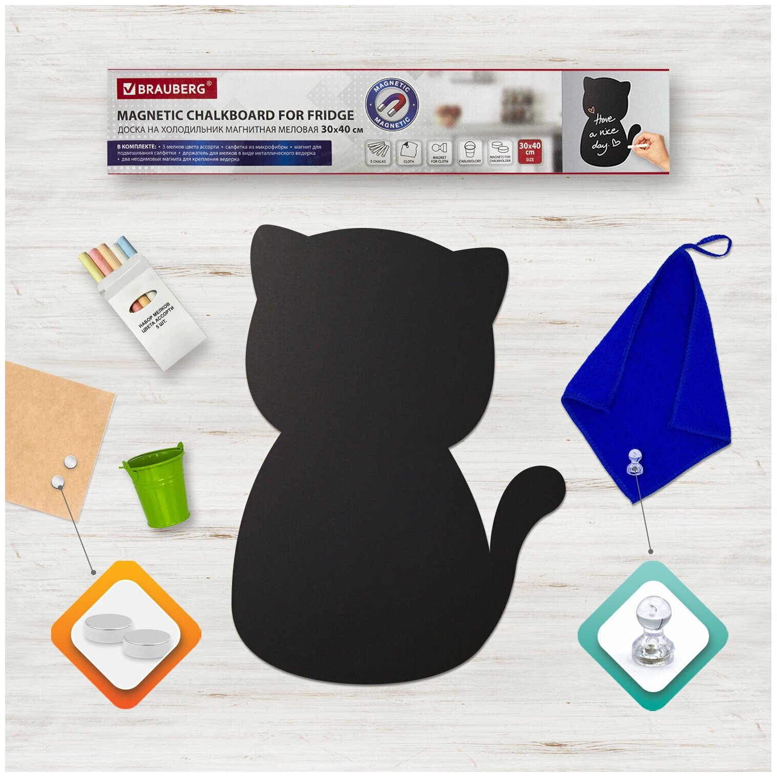 10 цен на BRAUBERG Доска на холодильник магнитно-меловая 30x40см "Pussy Cat" с набором аксессуаров, , 237840