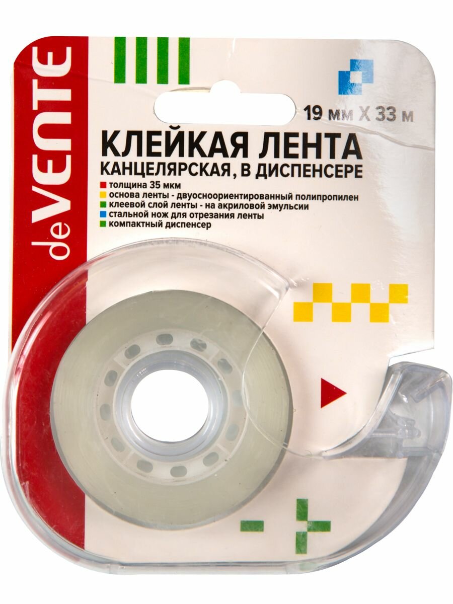 Клейкая лента канцелярская, прозрачная, 35 мкм, 19 ммx33 м, пластиковая втулка, в пластиков информация: