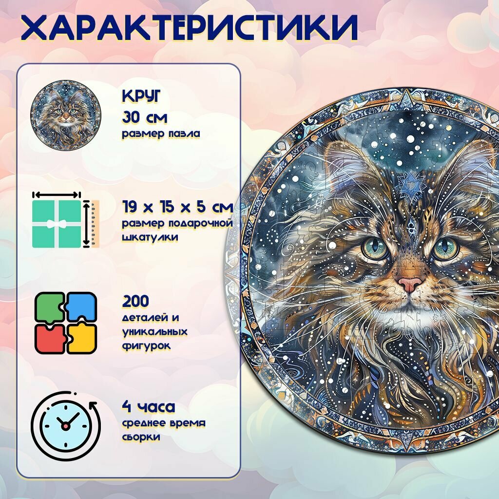 Деревянный пазл BoberBox "Мандала Сибирская кошка", 200 деталей информация: