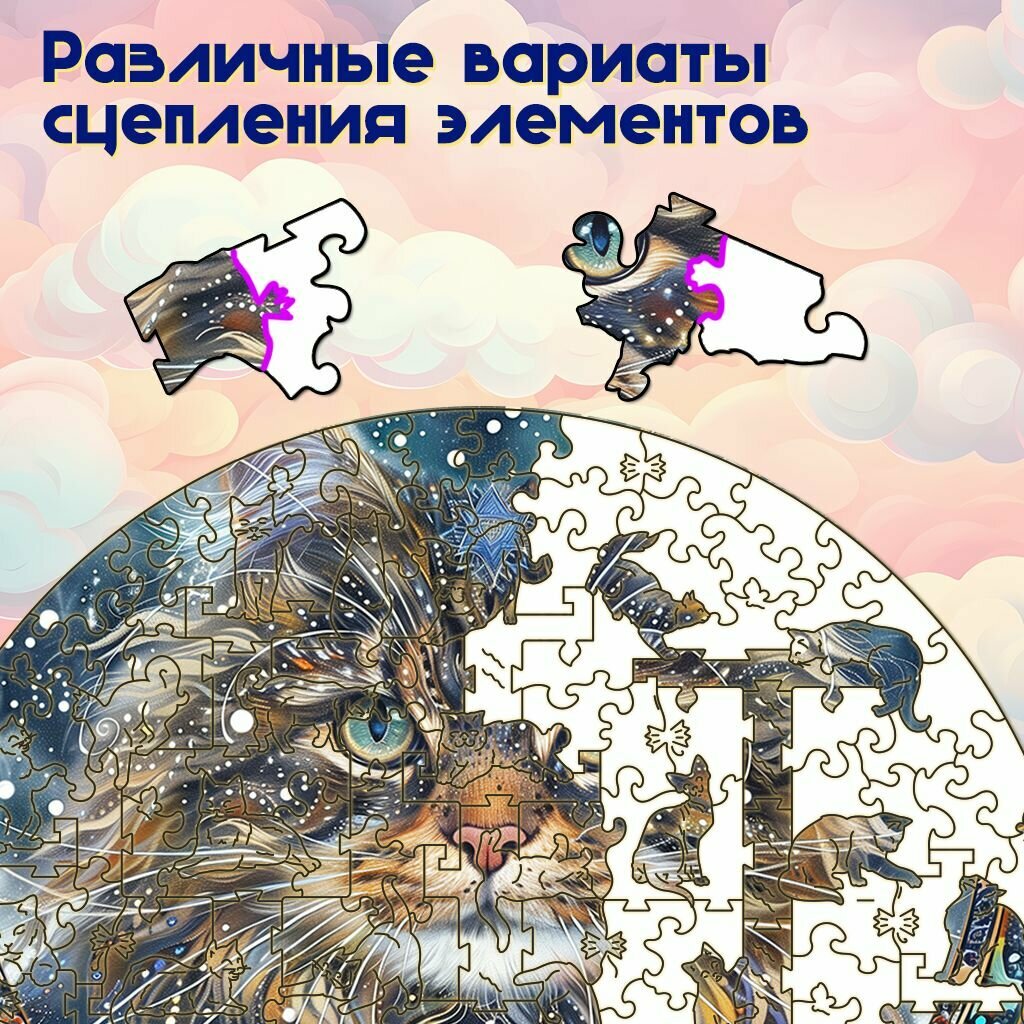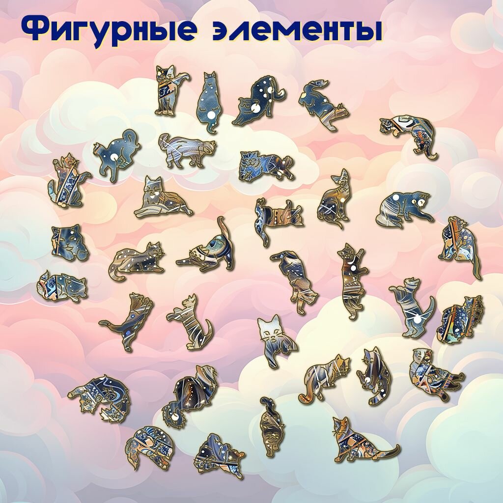 Деревянный пазл BoberBox "Чёрный звёздный кот", 200 деталей 1 085 ₽