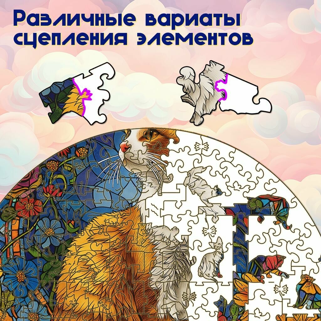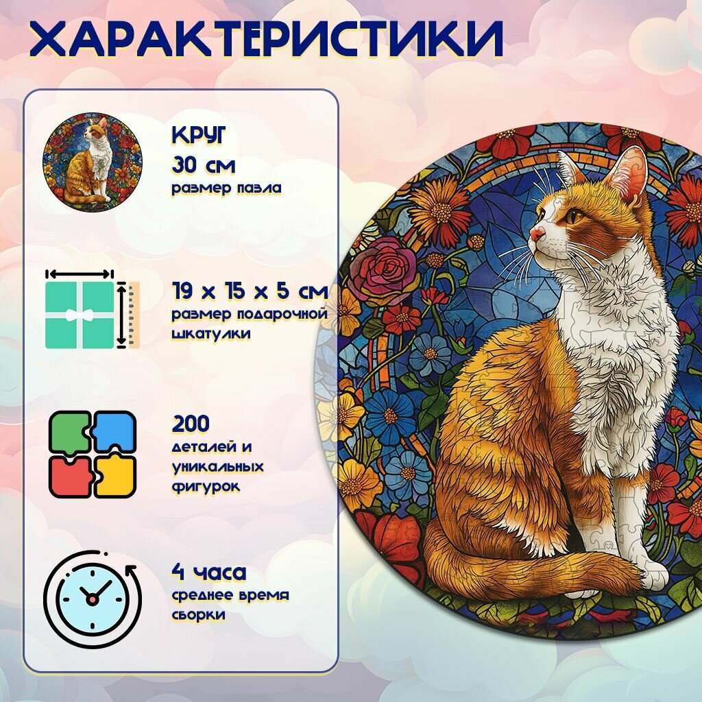 Деревянный пазл BoberBox "Цветочный мурлыка", 200 деталей информация:
