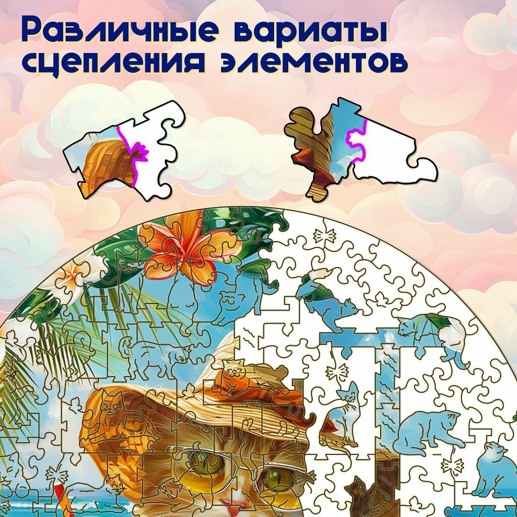 Деревянный пазл BoberBox "Кошачий отпуск", 200 деталей информация: