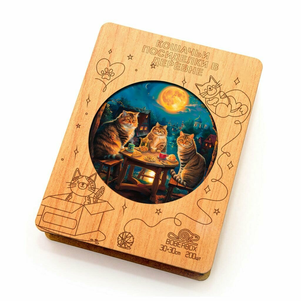 Деревянный пазл BoberBox "Кошачьи посиделки в деревне", 200 деталей информация: