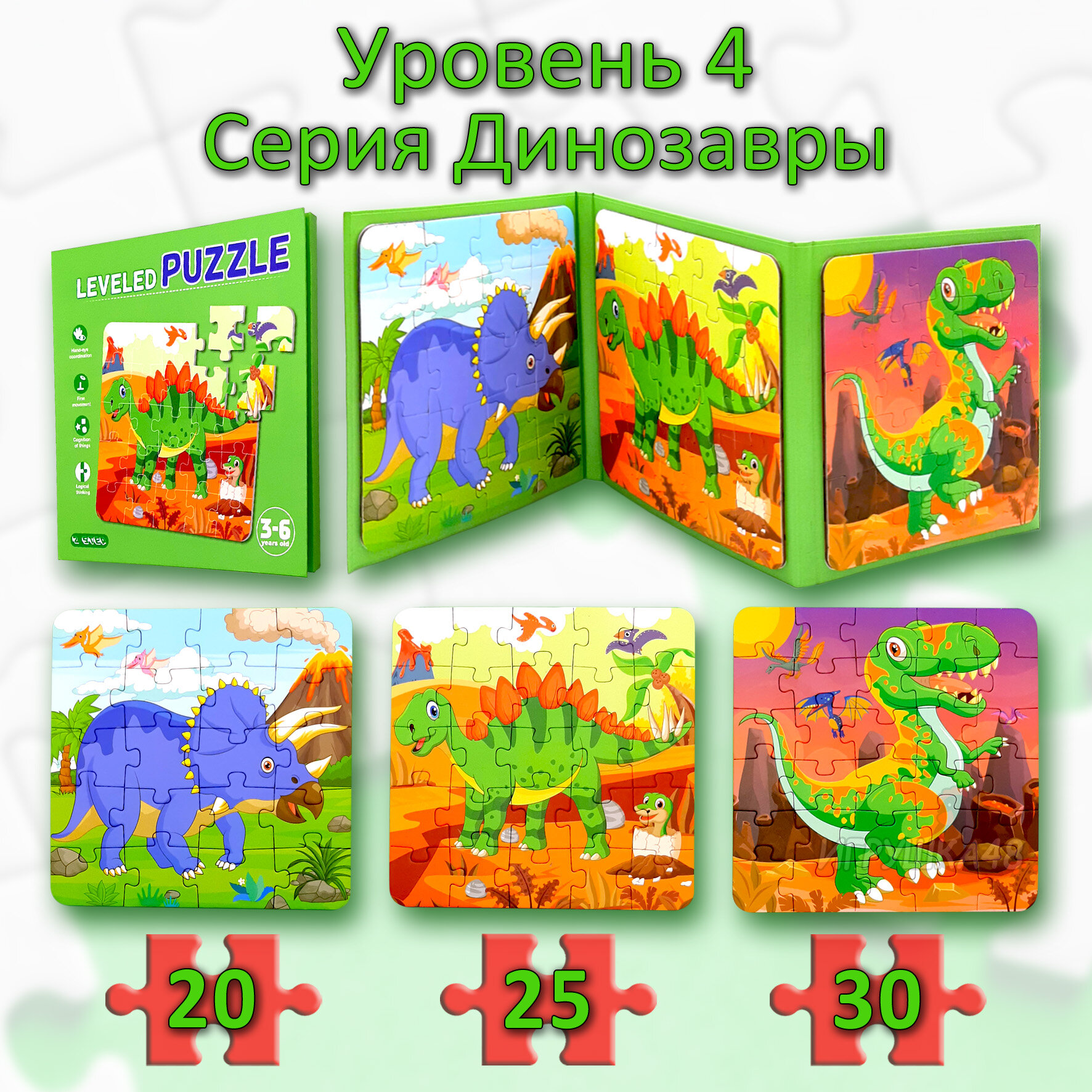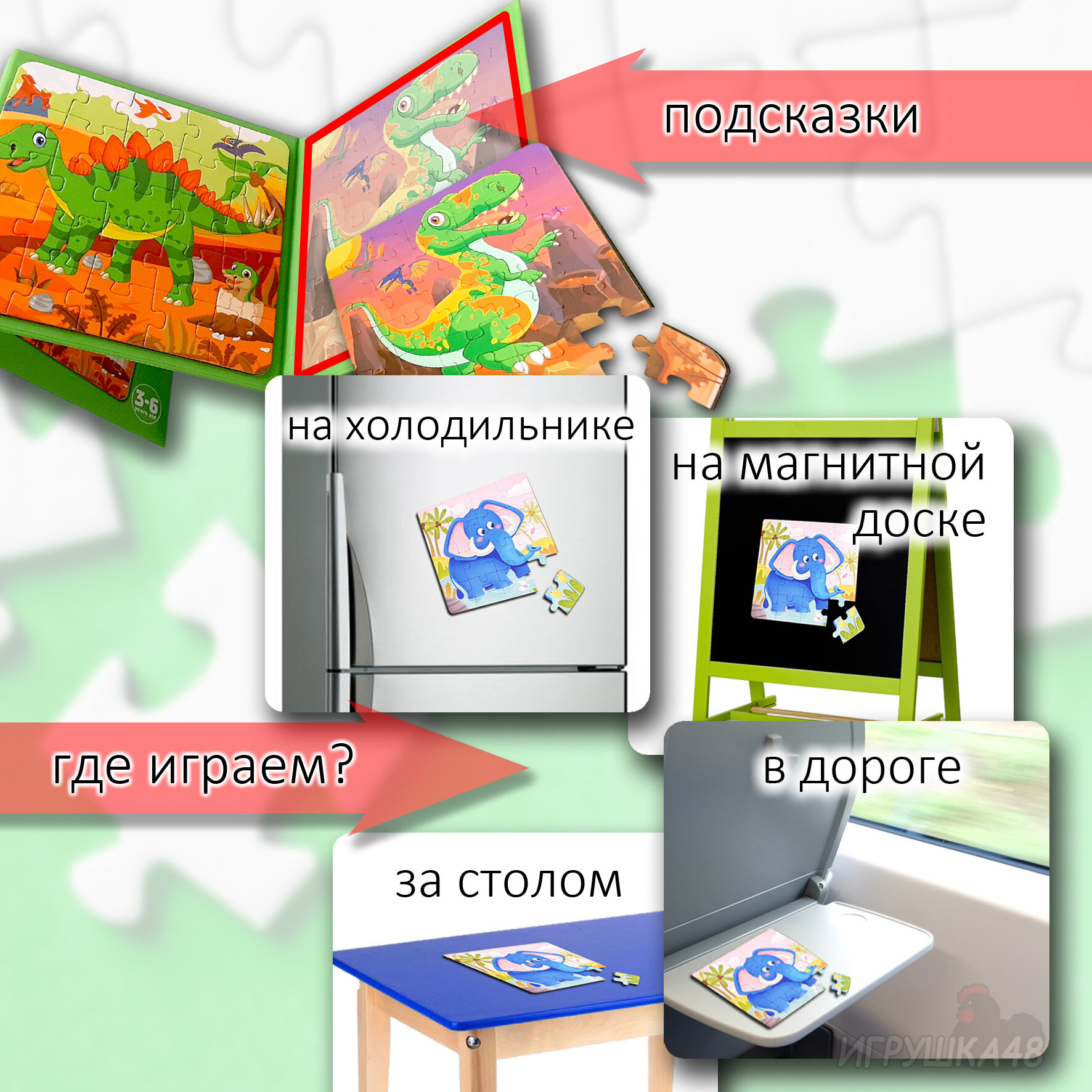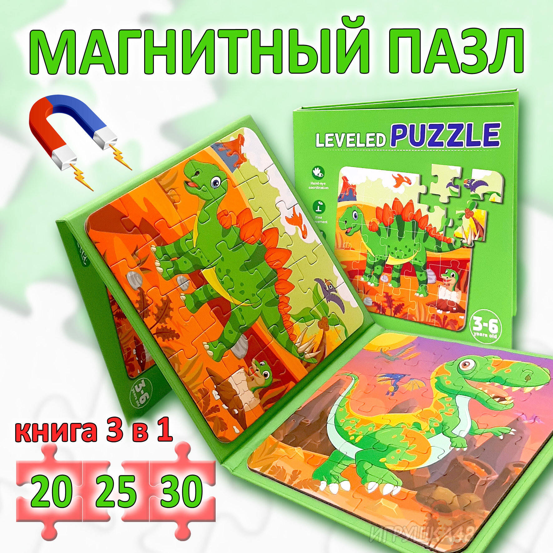 Отзывы на Магнитный пазл для малышей 3 в 1 / Пазл на магнитах игра в дорогу / Набор пазлов разного уровня сложности, 75 деталей, Динозавры, темно-зеленый