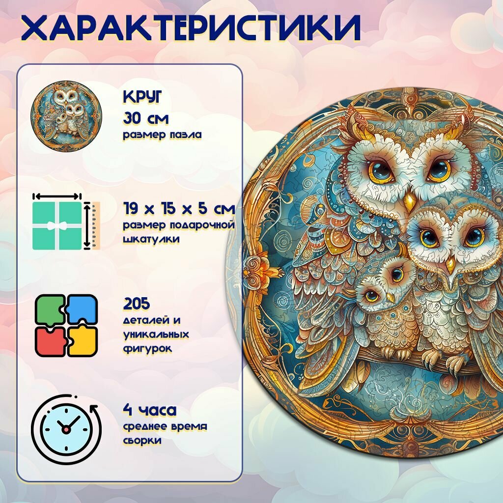 Деревянный пазл BoberBox "Совиная семья", 205 деталей информация: