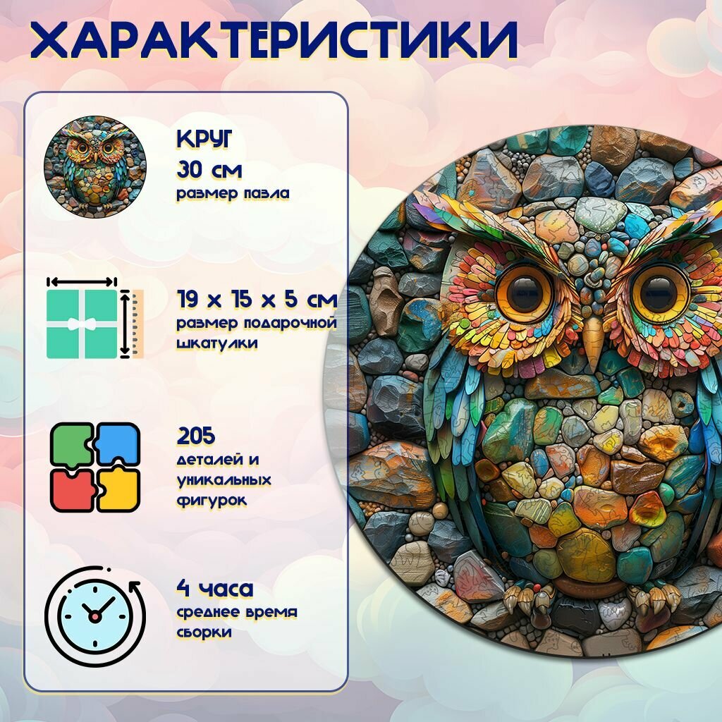 Деревянный пазл BoberBox "Сова из камушков", 205 деталей информация: