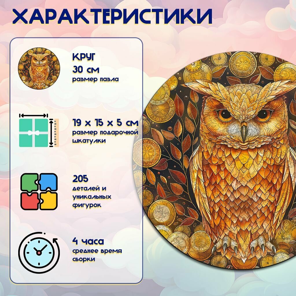 Деревянный пазл BoberBox "Мандала золотая Сова", 205 деталей информация: