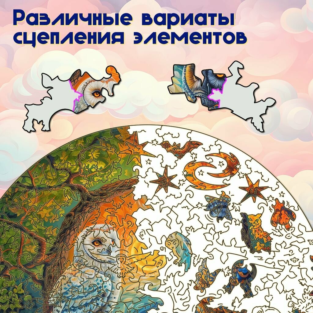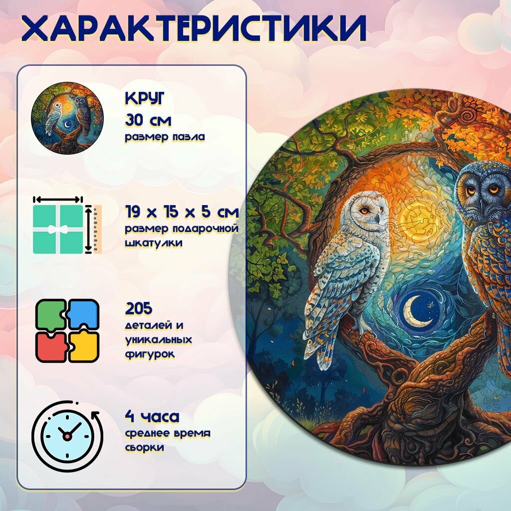 Деревянный пазл BoberBox "Совы Инь и Янь", 205 деталей информация: