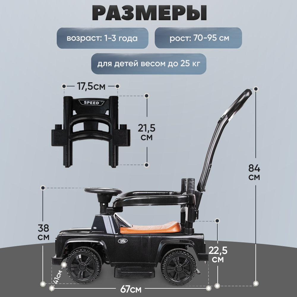 Каталка толокар с ручкой, свет, звук, капюшон, черная информация: