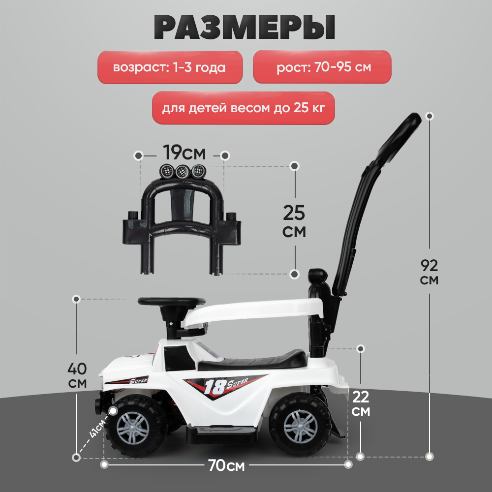 Каталка детская с ручкой и капюшоном, свет, звук информация: