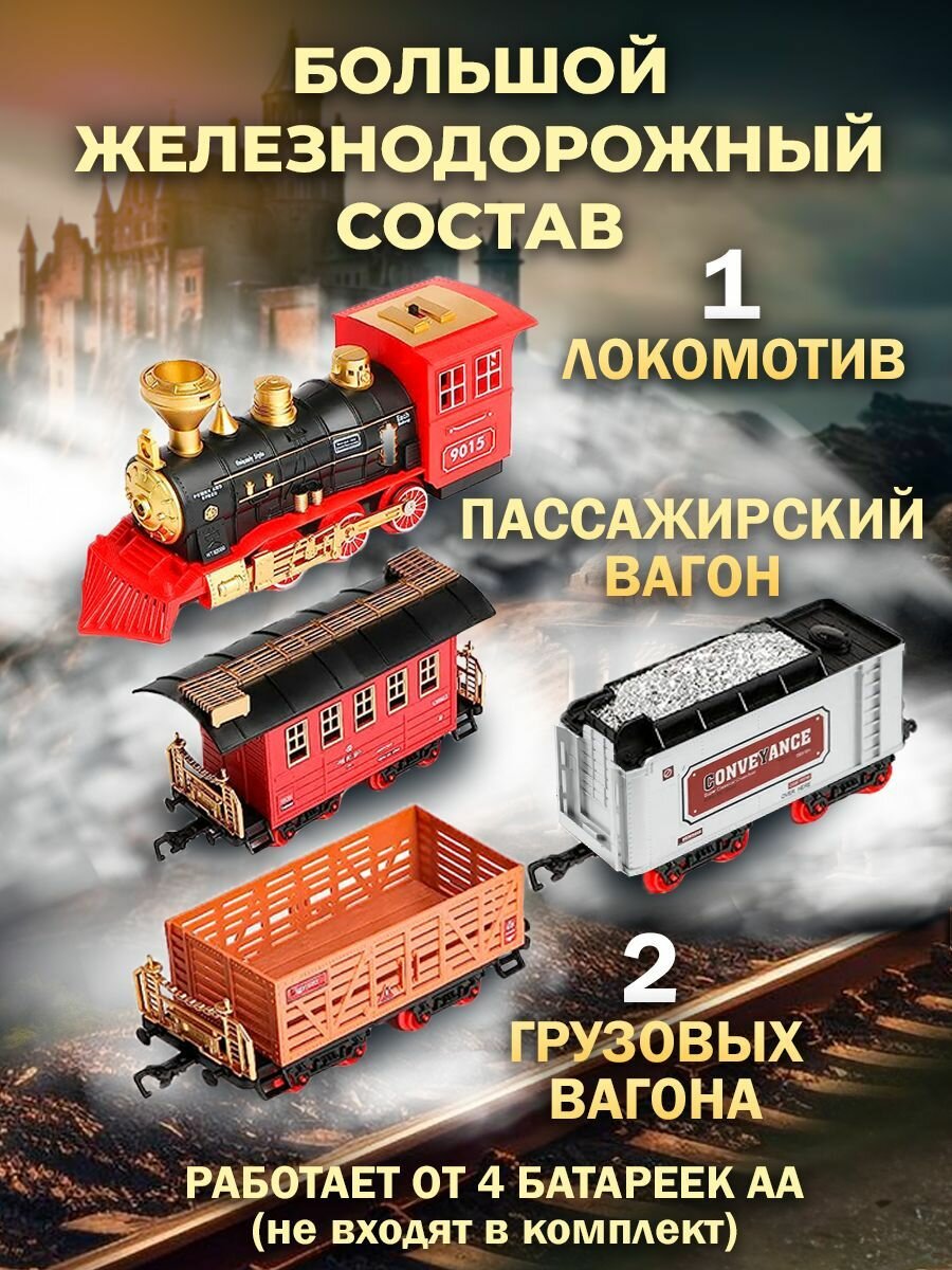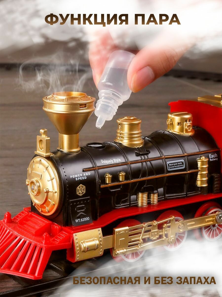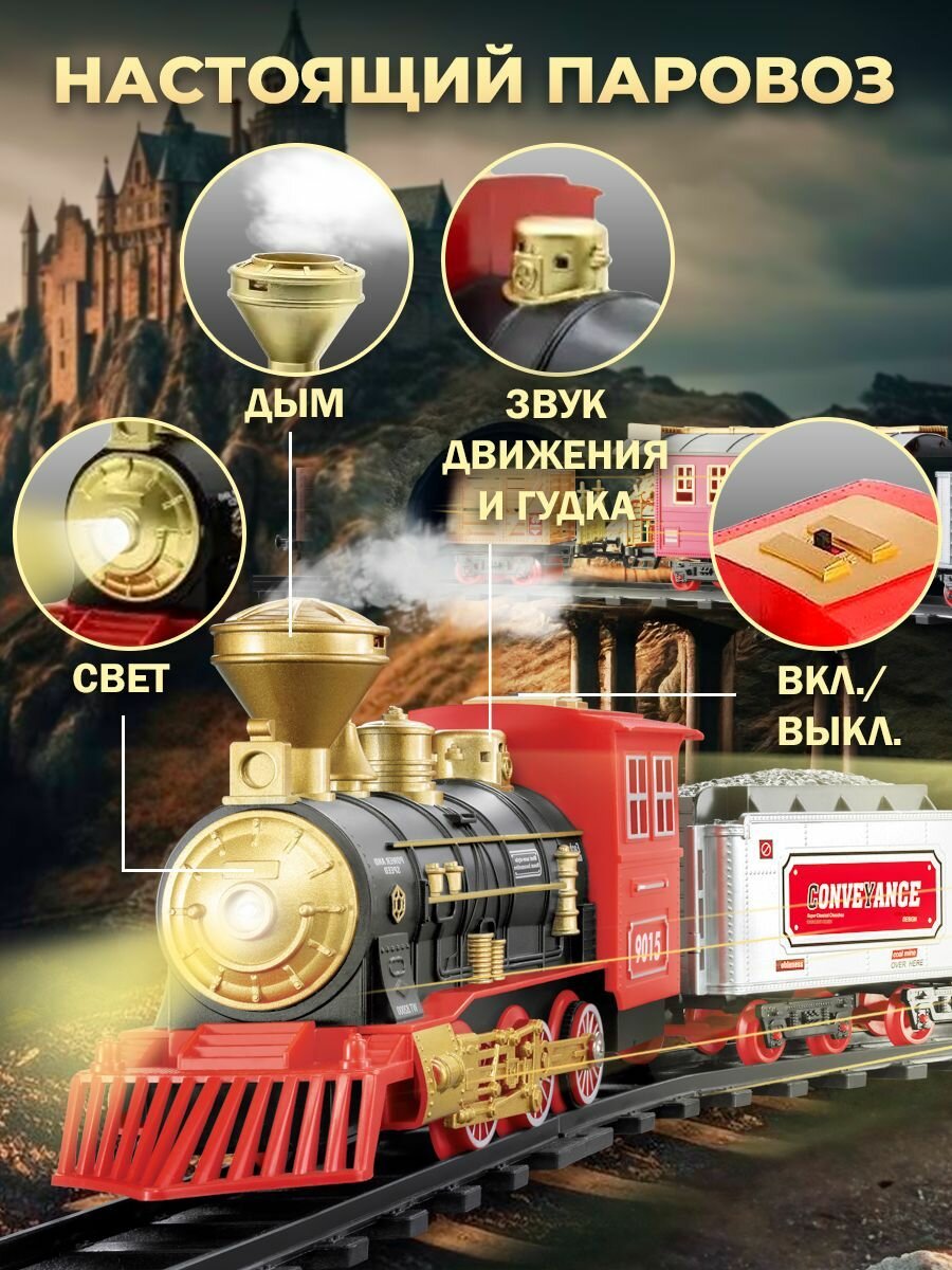 | Дополнительная информация | поезд с рельсами, большая железная дорога, световые и звуковые эффекты, дым |